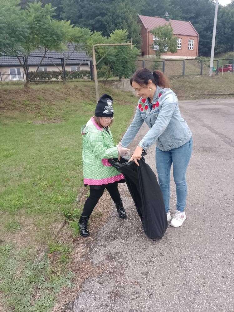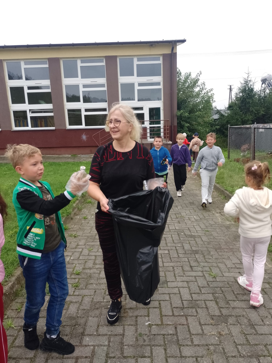 Uczniowie klas 1-3 uczestniczyli dziś w Akcji Sprzątania Świata 2025 ,,W naturę z kulturą" porządkując teren wokół szkoły.