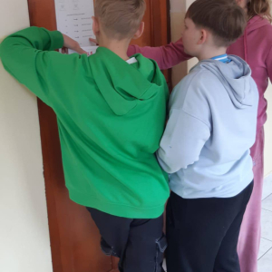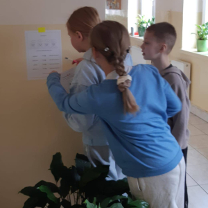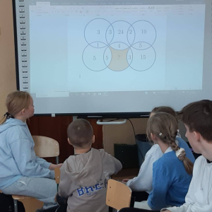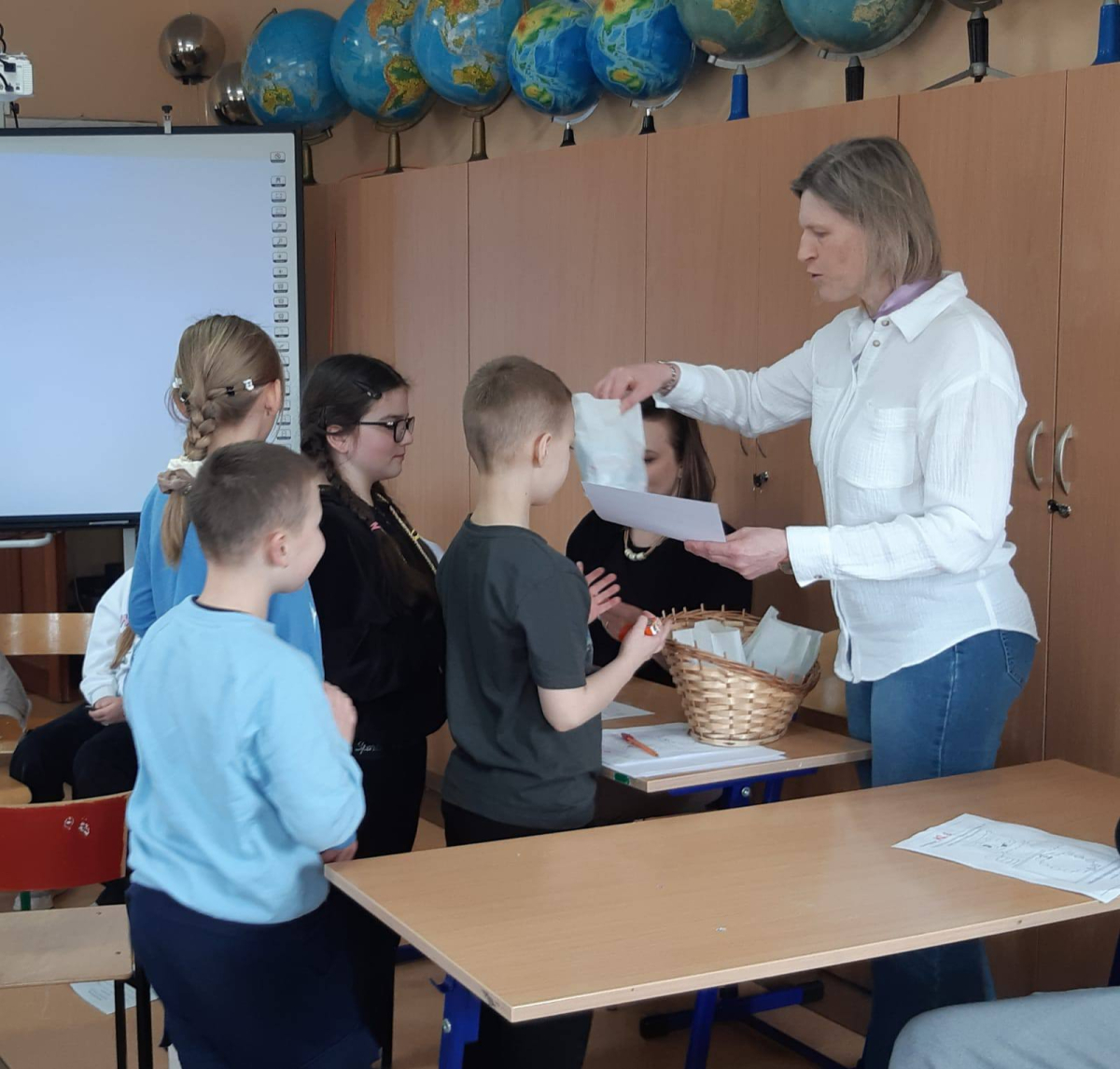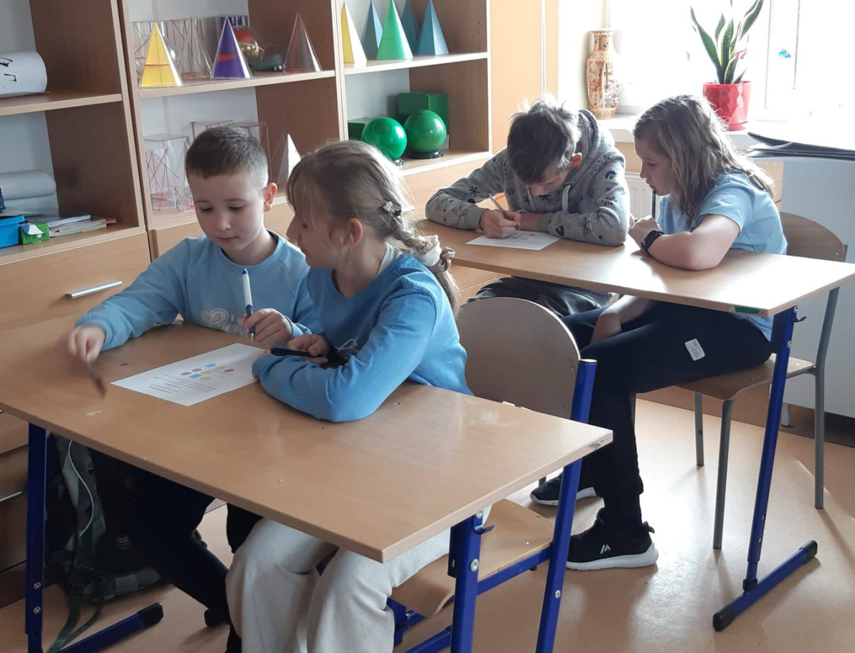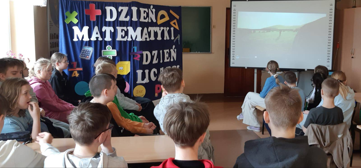 25 marca 2026 r. - Dzień Matematyki był w naszej szkole dniem logicznych wyzwań i odkrywania przyjemniejszej strony królowej nauk. Spotkanie rozpoczęła filmowa podróż do krainy matematyki. Uczniowie obejrzeli krótkometrażowy obraz przygotowany przez BBC pt. „Niewymierna liczba pi”, który miał rozbudzić ciekawość i zachęcić do pogłębiania wiedzy. Po filmie klasy IV-VII wzięły udział w turnieju matematycznym. Uczniowie rozwiązywali zagadki liczbowe, łamigłówki z zapałkami oraz zadania przygotowane na stacjach zadaniowych. Nie wymagały one wybitnej wiedzy matematycznej. Wystarczył otwarty umysł i chęć do zabawy matematyką. Najlepszy wynik w turnieju uzyskali piątoklasiści, ale wszystkie klasy były bardzo zaangażowane i dzielnie walczyły z zadaniami. Dzień ten pokazał, że matematyka może sprawiać radość i satysfakcję z pokonywania trudności.