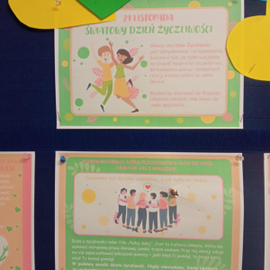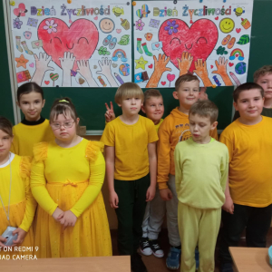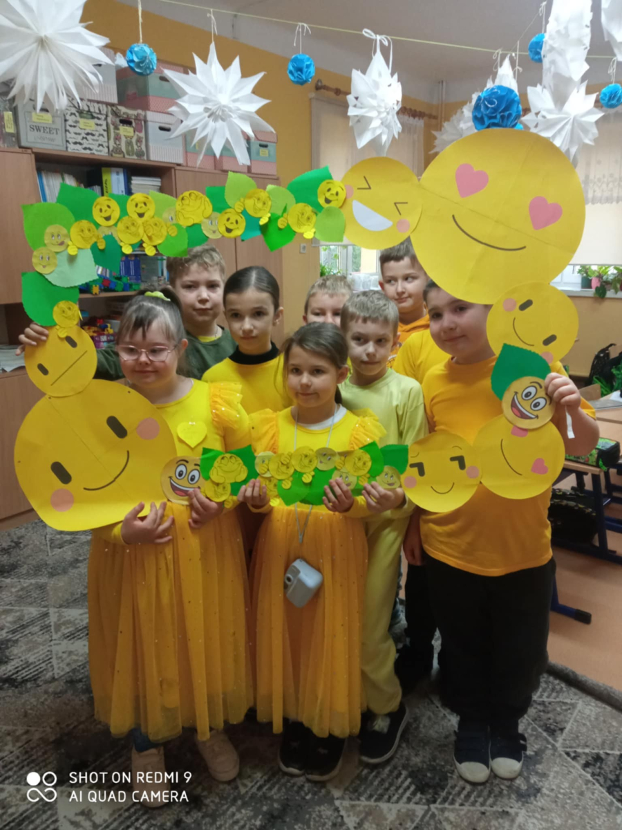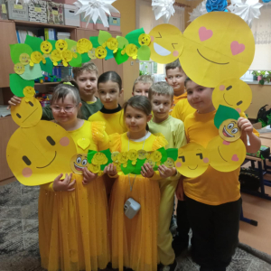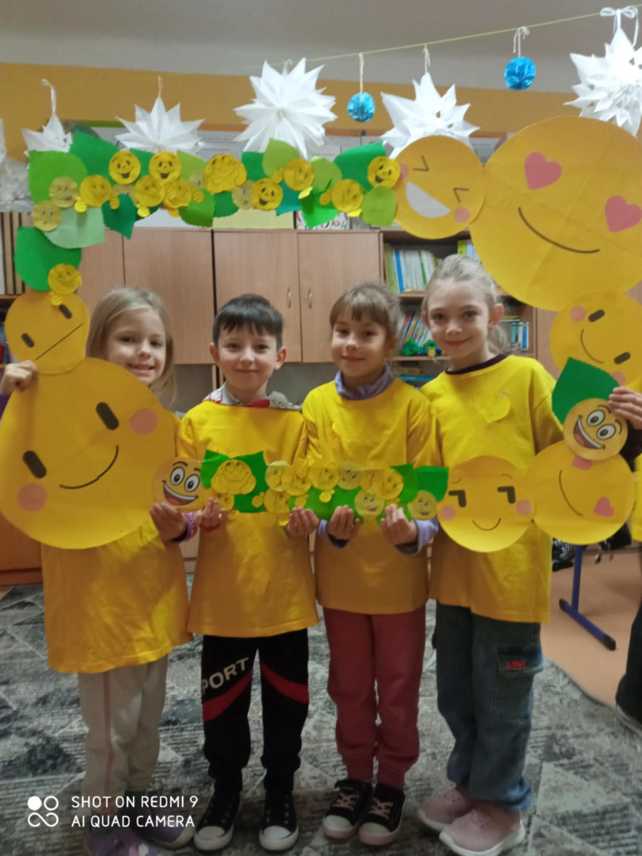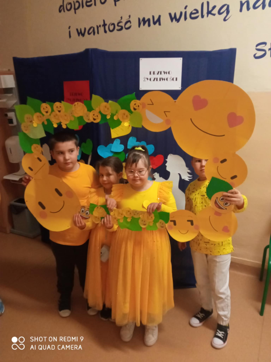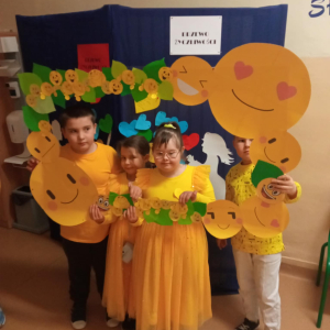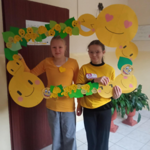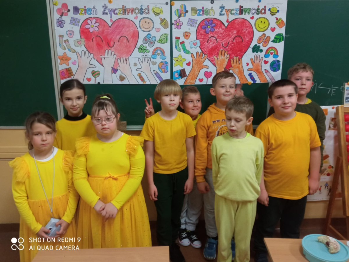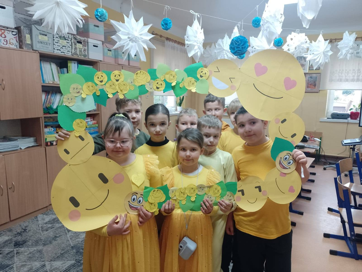 „Bądź dla wszystkich życzliwy, a świat będzie szczęśliwy” – to hasło towarzyszyło nam 21 listopada, kiedy w naszej szkole odbywał się Światowy Dzień Życzliwości i Pozdrowień. Cała społeczność szkolna swoją radość, entuzjazm postanowiła wyrazić poprzez żółte akcenty w ubiorze. Wchodząc rano do szkoły, każdy otrzymał kartkę z sentencją na dobry dzień oraz miłe pozdrowienie. W holu głównym czekała miła niespodzianka w postaci drzewa życzliwości, gdzie mogliśmy dołączyć do grona życzliwych i dzielić się radością poprzez wykonanie i zapisanie na listkach drzewa życzliwego uczynku wobec innych. Podczas przerw nasi uczniowie wzięli udział w zabawie ,,Drabina Uprzejmości”. Reprezentując różne poziomy uprzejmości, uczniowie ,,wspinali się” po drabinie, wykonując różne życzliwe działania, takie jak pomaganie kolegom, dzielenie się przyborami szkolnymi czy wyrażanie wdzięczności. Każde pozytywne działanie pozwala uczniowi awansować na kolejny szczebel drabiny, co wzmacnia motywację do bycia uprzejmym i życzliwym na co dzień. W klasach również nie brakowało „życzliwych” pomysłów – rozmawialiśmy o tym, że bycie życzliwym jest ważne, na korytarzach zawisły plakaty i informacje na temat życzliwości i uśmiechu, była spora dawka pozytywnej energii, która zmobilizowała tych małych i tych dużych do działania. Na koniec dnia wszyscy zarówno uczniowie jak i nauczyciele przekazali sobie iskierkę przyjaźni. Pamiętajmy, że każdy z nas potrzebuje szacunku, ciepła, akceptacji, miłego słowa, szczerego uśmiechu… Promujmy zatem życzliwość, zarażajmy nią innych, zachęcajmy do czynienia dobra codziennie, nie tylko od święta.