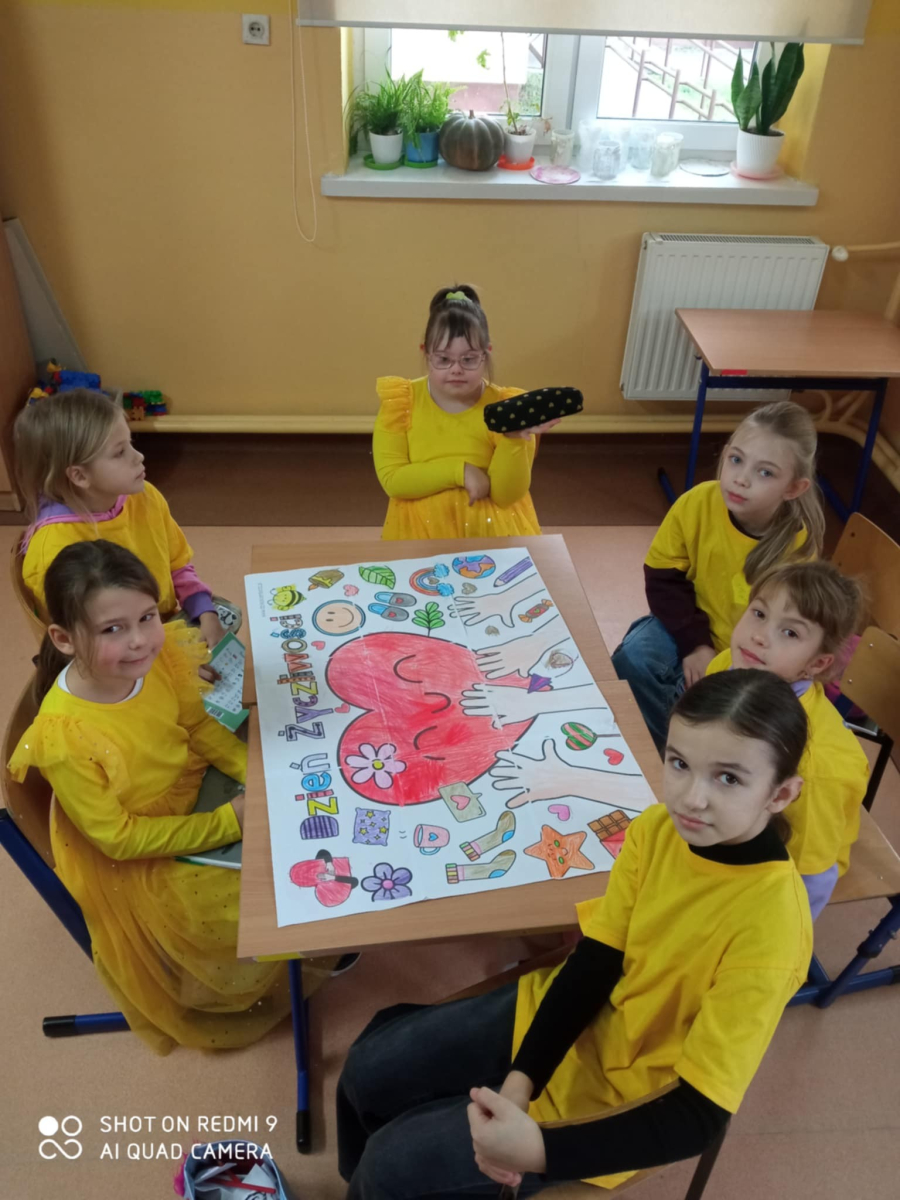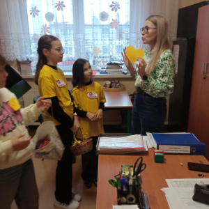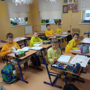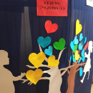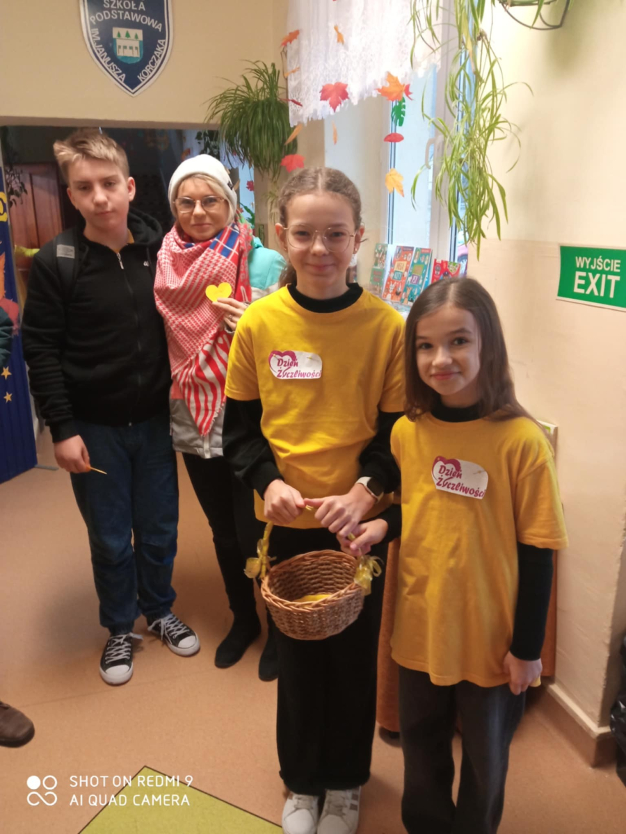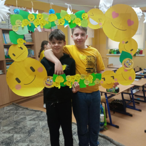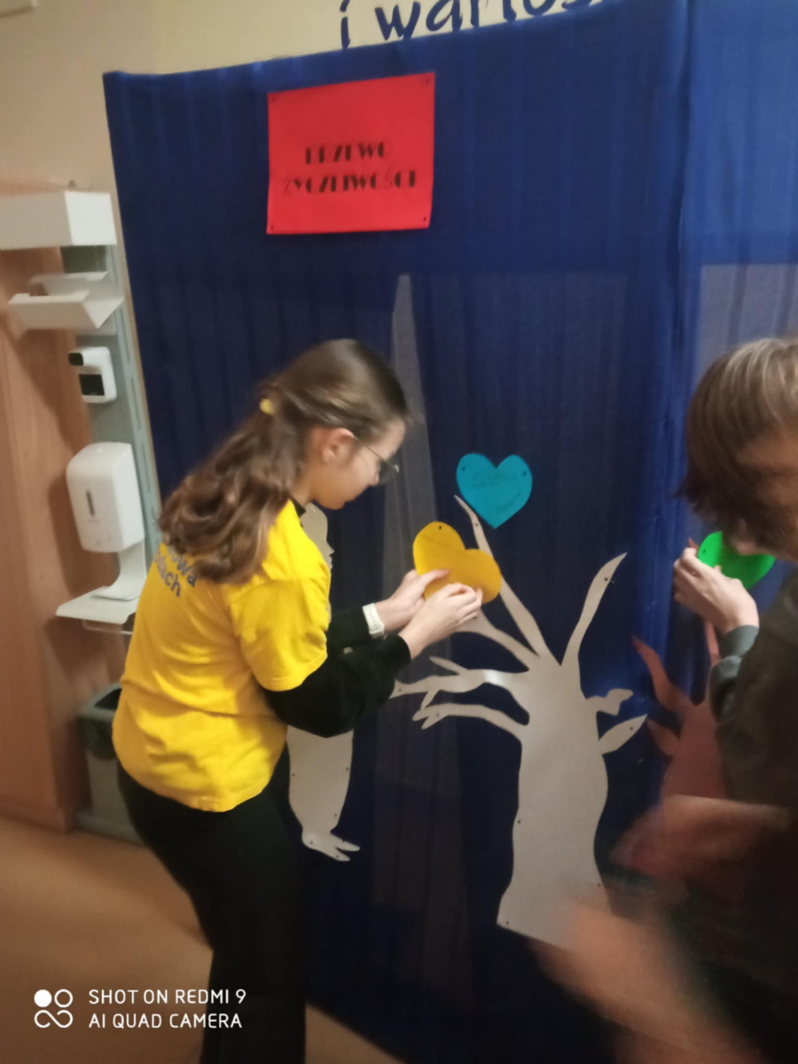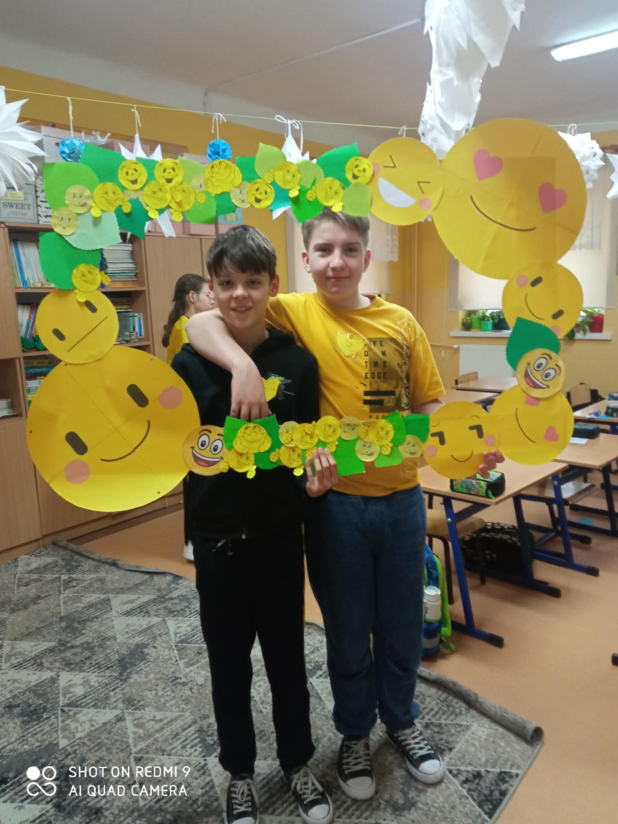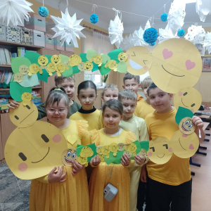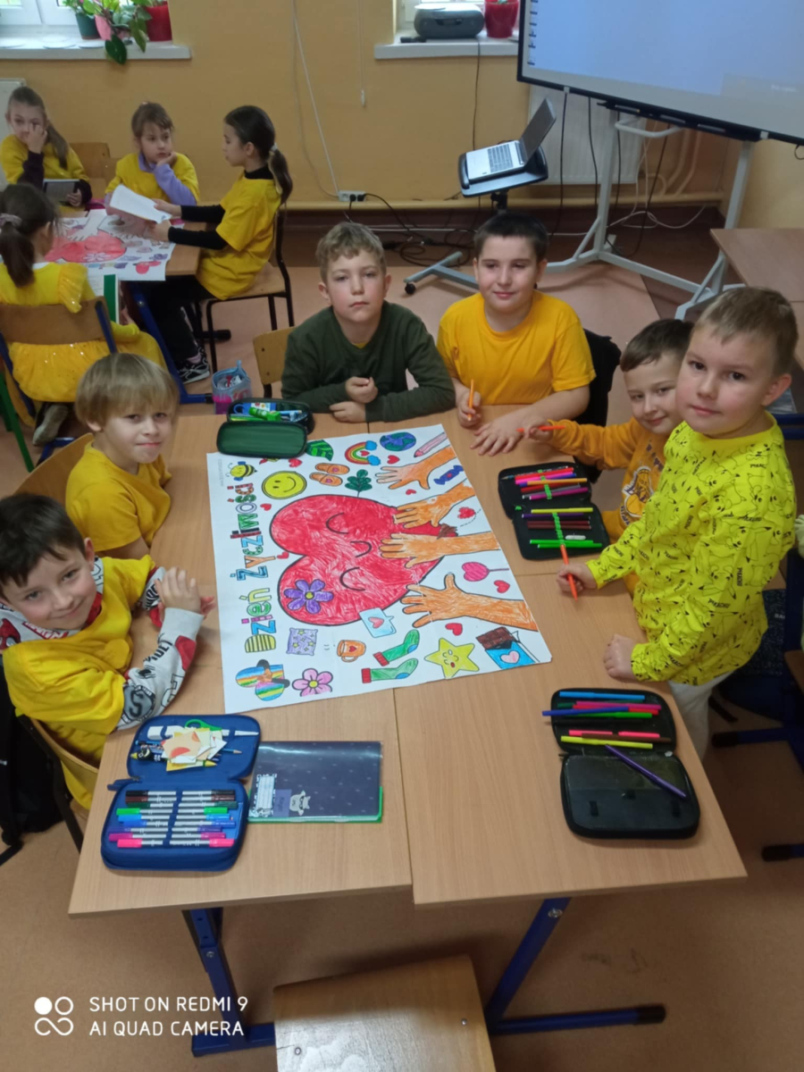 „Bądź dla wszystkich życzliwy, a świat będzie szczęśliwy” – to hasło towarzyszyło nam 21 listopada, kiedy w naszej szkole odbywał się Światowy Dzień Życzliwości i Pozdrowień. Cała społeczność szkolna swoją radość, entuzjazm postanowiła wyrazić poprzez żółte akcenty w ubiorze. Wchodząc rano do szkoły, każdy otrzymał kartkę z sentencją na dobry dzień oraz miłe pozdrowienie. W holu głównym czekała miła niespodzianka w postaci drzewa życzliwości, gdzie mogliśmy dołączyć do grona życzliwych i dzielić się radością poprzez wykonanie i zapisanie na listkach drzewa życzliwego uczynku wobec innych. Podczas przerw nasi uczniowie wzięli udział w zabawie ,,Drabina Uprzejmości”. Reprezentując różne poziomy uprzejmości, uczniowie ,,wspinali się” po drabinie, wykonując różne życzliwe działania, takie jak pomaganie kolegom, dzielenie się przyborami szkolnymi czy wyrażanie wdzięczności. Każde pozytywne działanie pozwala uczniowi awansować na kolejny szczebel drabiny, co wzmacnia motywację do bycia uprzejmym i życzliwym na co dzień. W klasach również nie brakowało „życzliwych” pomysłów – rozmawialiśmy o tym, że bycie życzliwym jest ważne, na korytarzach zawisły plakaty i informacje na temat życzliwości i uśmiechu, była spora dawka pozytywnej energii, która zmobilizowała tych małych i tych dużych do działania. Na koniec dnia wszyscy zarówno uczniowie jak i nauczyciele przekazali sobie iskierkę przyjaźni. Pamiętajmy, że każdy z nas potrzebuje szacunku, ciepła, akceptacji, miłego słowa, szczerego uśmiechu… Promujmy zatem życzliwość, zarażajmy nią innych, zachęcajmy do czynienia dobra codziennie, nie tylko od święta.