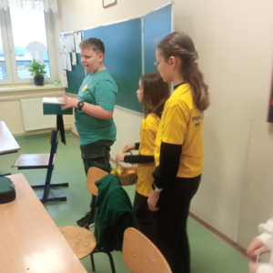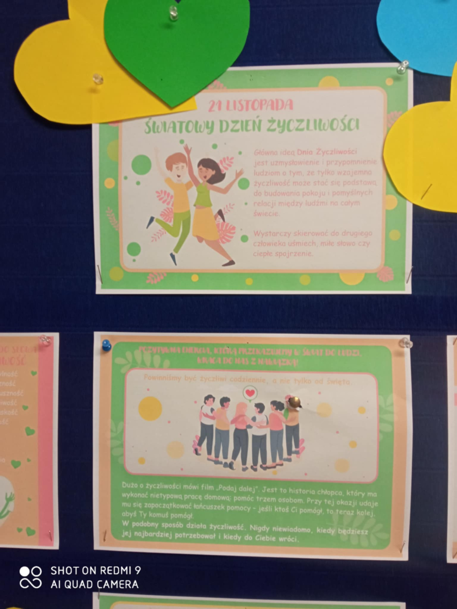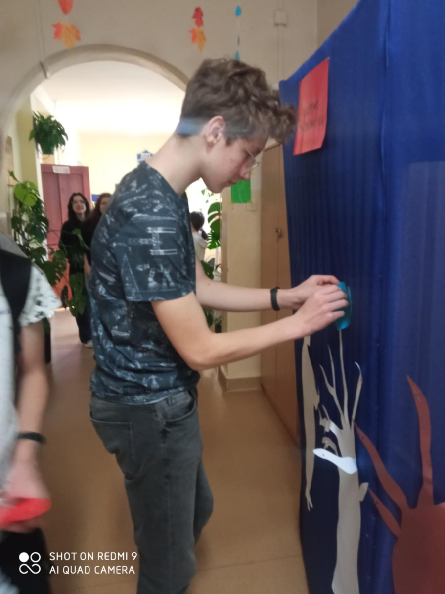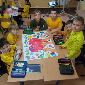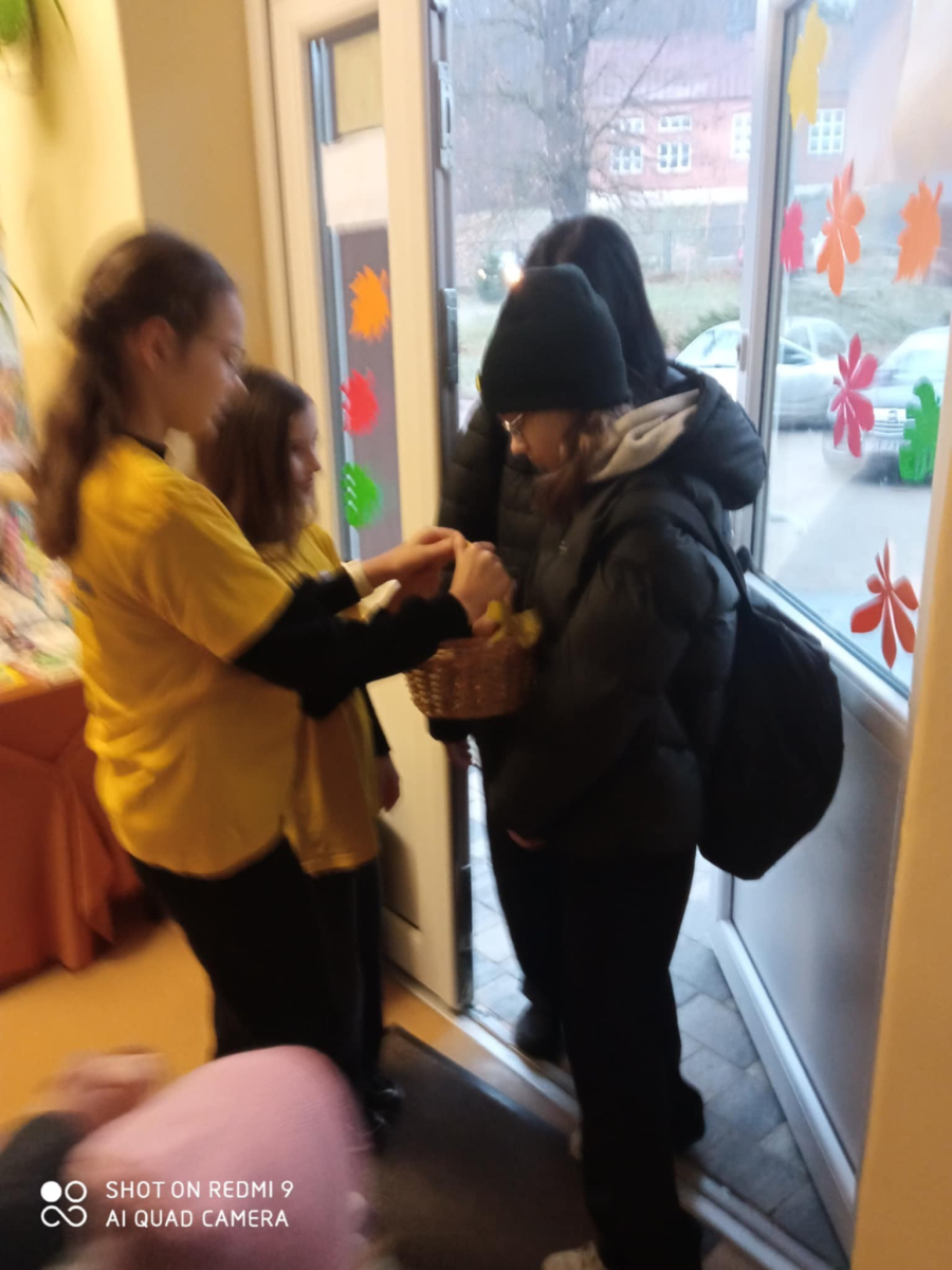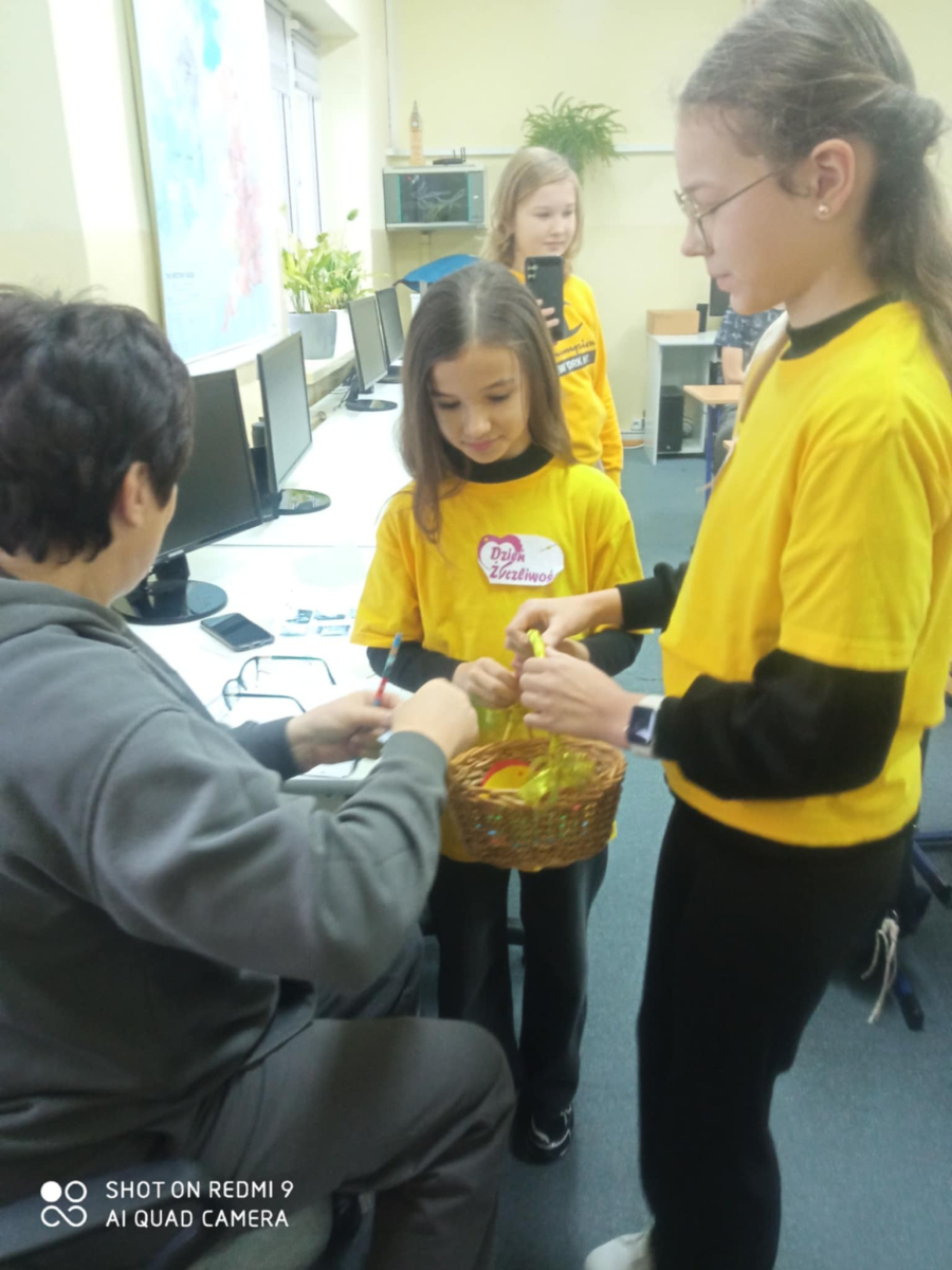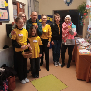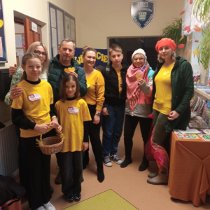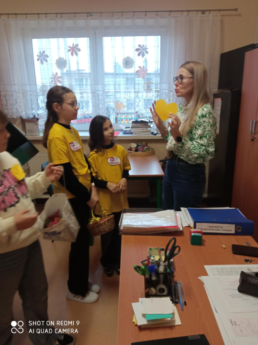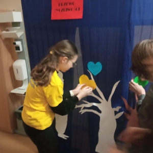 „Bądź dla wszystkich życzliwy, a świat będzie szczęśliwy” – to hasło towarzyszyło nam 21 listopada, kiedy w naszej szkole odbywał się Światowy Dzień Życzliwości i Pozdrowień. Cała społeczność szkolna swoją radość, entuzjazm postanowiła wyrazić poprzez żółte akcenty w ubiorze. Wchodząc rano do szkoły, każdy otrzymał kartkę z sentencją na dobry dzień oraz miłe pozdrowienie. W holu głównym czekała miła niespodzianka w postaci drzewa życzliwości, gdzie mogliśmy dołączyć do grona życzliwych i dzielić się radością poprzez wykonanie i zapisanie na listkach drzewa życzliwego uczynku wobec innych. Podczas przerw nasi uczniowie wzięli udział w zabawie ,,Drabina Uprzejmości”. Reprezentując różne poziomy uprzejmości, uczniowie ,,wspinali się” po drabinie, wykonując różne życzliwe działania, takie jak pomaganie kolegom, dzielenie się przyborami szkolnymi czy wyrażanie wdzięczności. Każde pozytywne działanie pozwala uczniowi awansować na kolejny szczebel drabiny, co wzmacnia motywację do bycia uprzejmym i życzliwym na co dzień. W klasach również nie brakowało „życzliwych” pomysłów – rozmawialiśmy o tym, że bycie życzliwym jest ważne, na korytarzach zawisły plakaty i informacje na temat życzliwości i uśmiechu, była spora dawka pozytywnej energii, która zmobilizowała tych małych i tych dużych do działania. Na koniec dnia wszyscy zarówno uczniowie jak i nauczyciele przekazali sobie iskierkę przyjaźni. Pamiętajmy, że każdy z nas potrzebuje szacunku, ciepła, akceptacji, miłego słowa, szczerego uśmiechu… Promujmy zatem życzliwość, zarażajmy nią innych, zachęcajmy do czynienia dobra codziennie, nie tylko od święta.