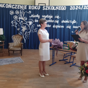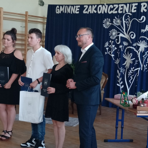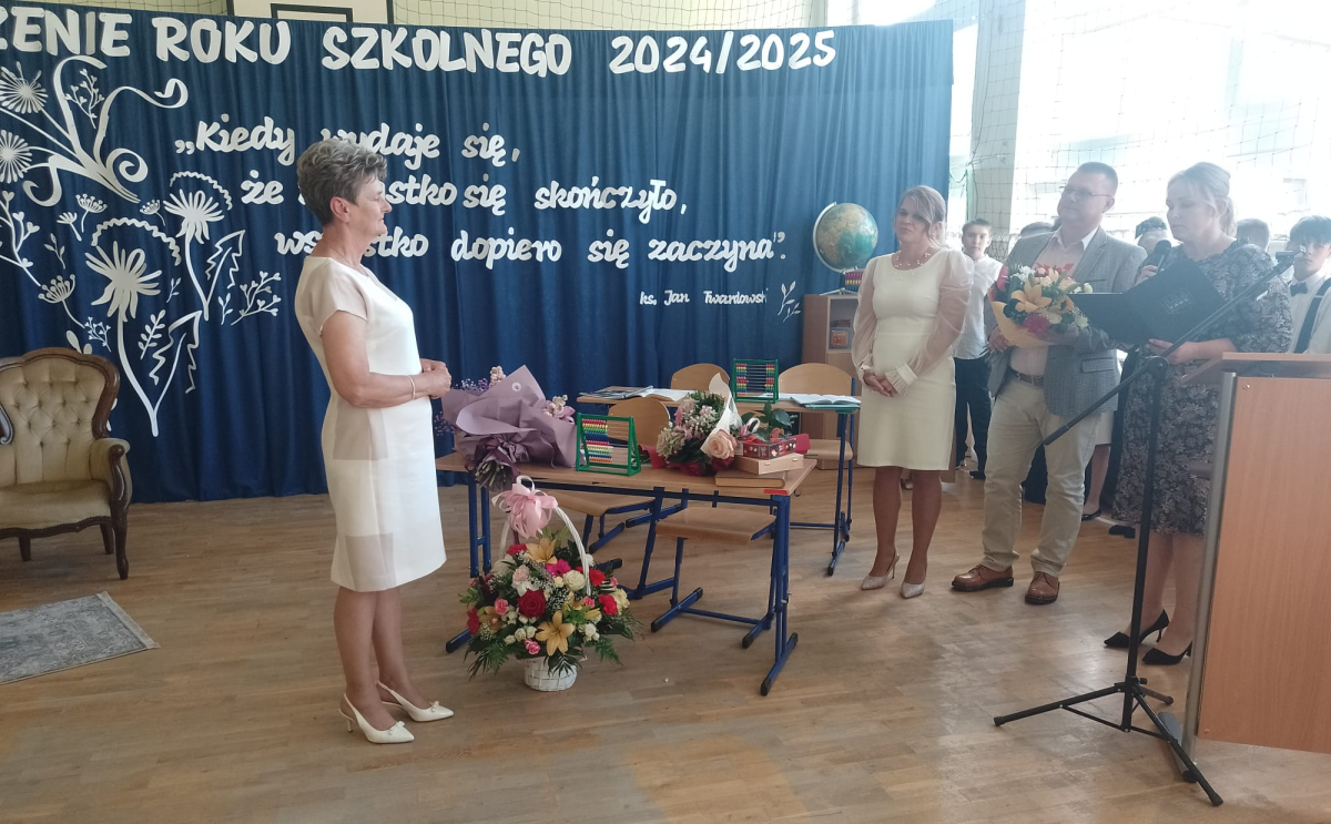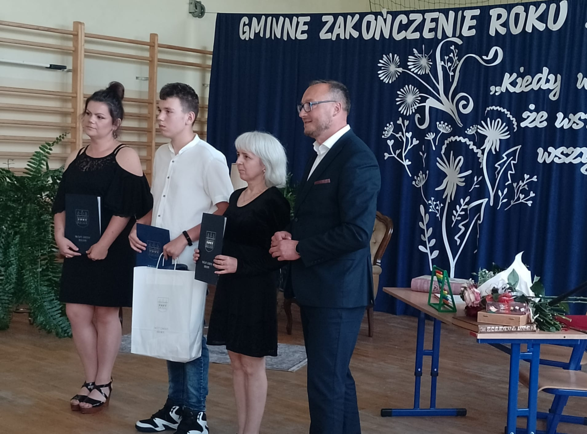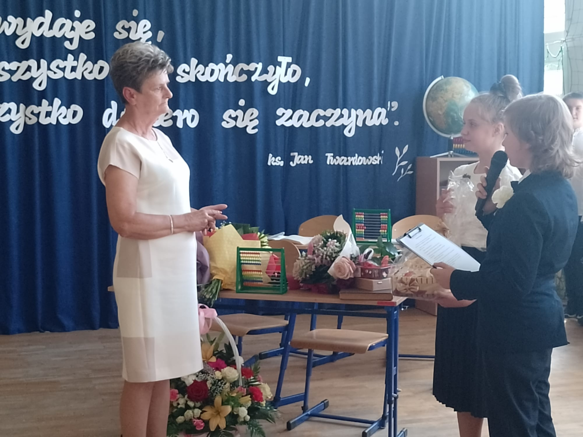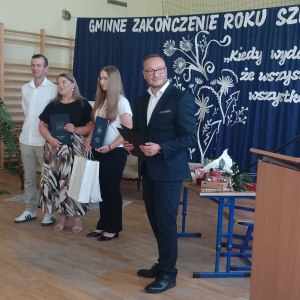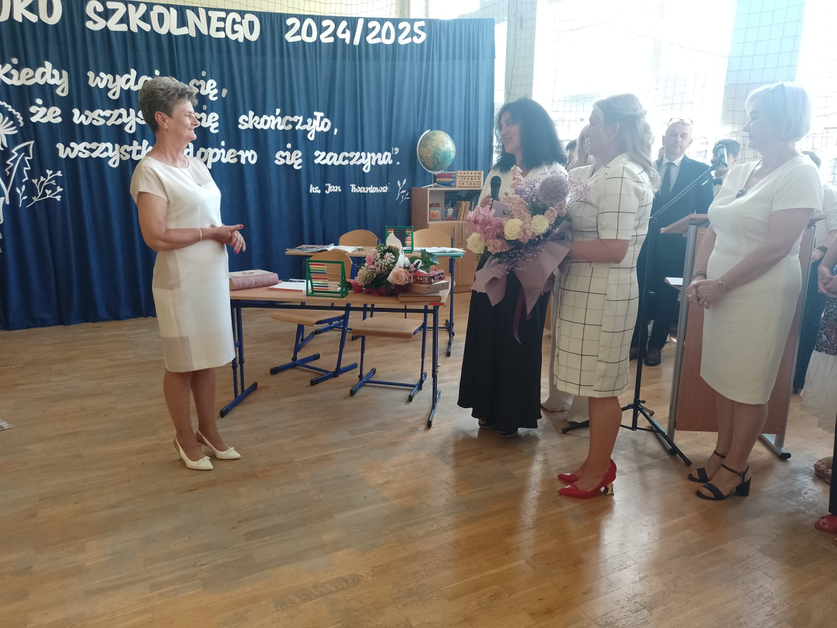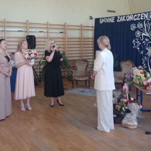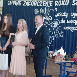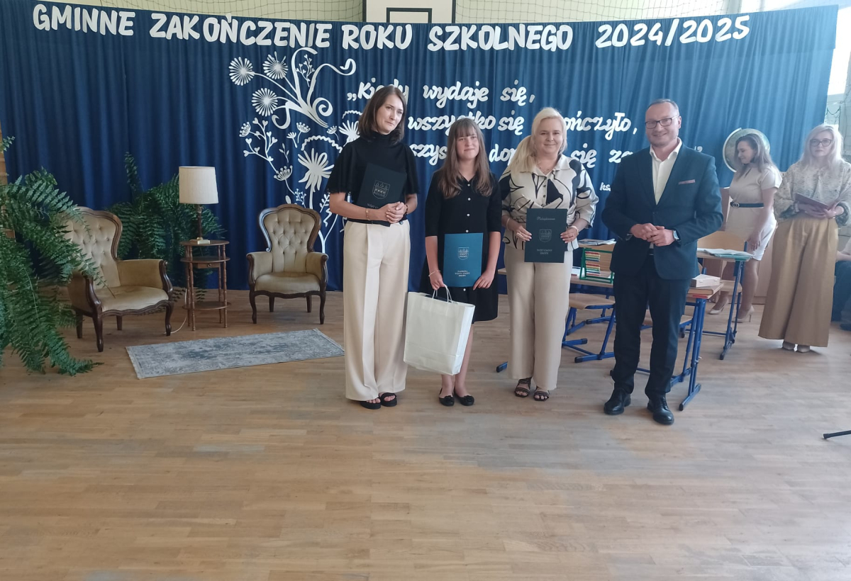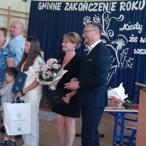 Na emeryturę odeszły dyrektor placówki - pani Nina Milanowska i dyrektor Centrum Usług Wspólnych - pani Dorota Grudnicka - Glina. Pan Wójt Ernest Kumek podziękował obydwu paniom za lata odpowiedzialnej pracy na rzecz społeczności szkolnej oraz gratulował sukcesów wyróżnionym uczniom. Całości dopełnił wzruszający, ale też pełen humoru program artystyczny.