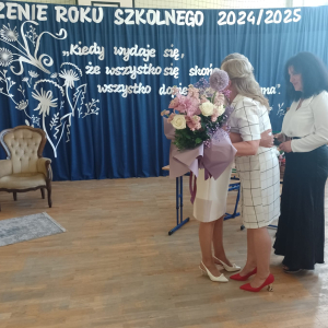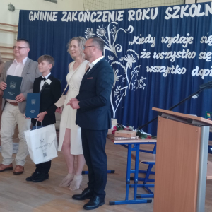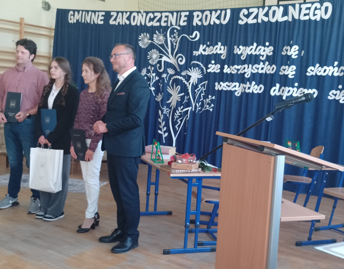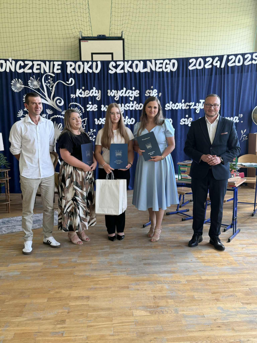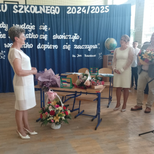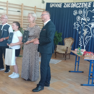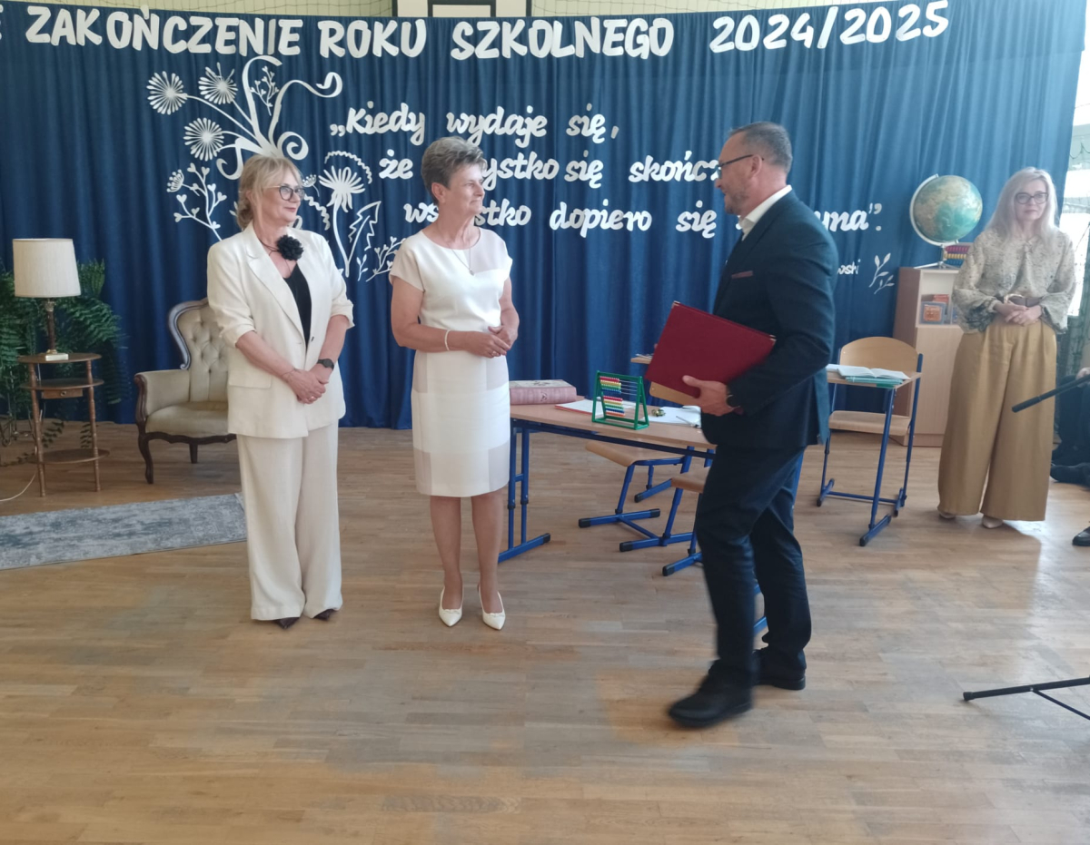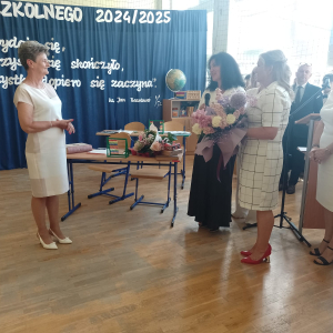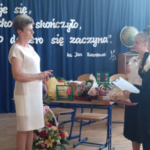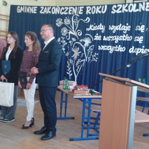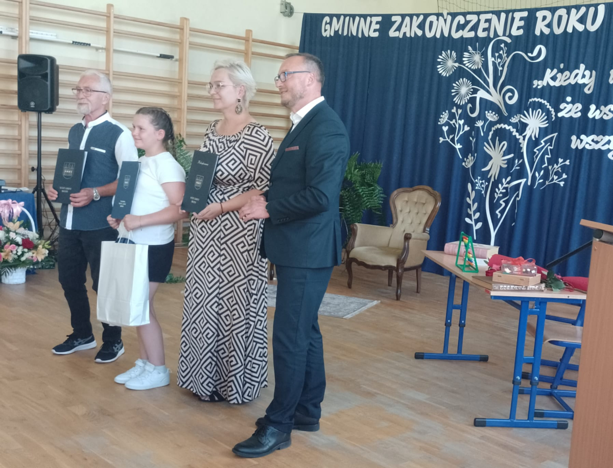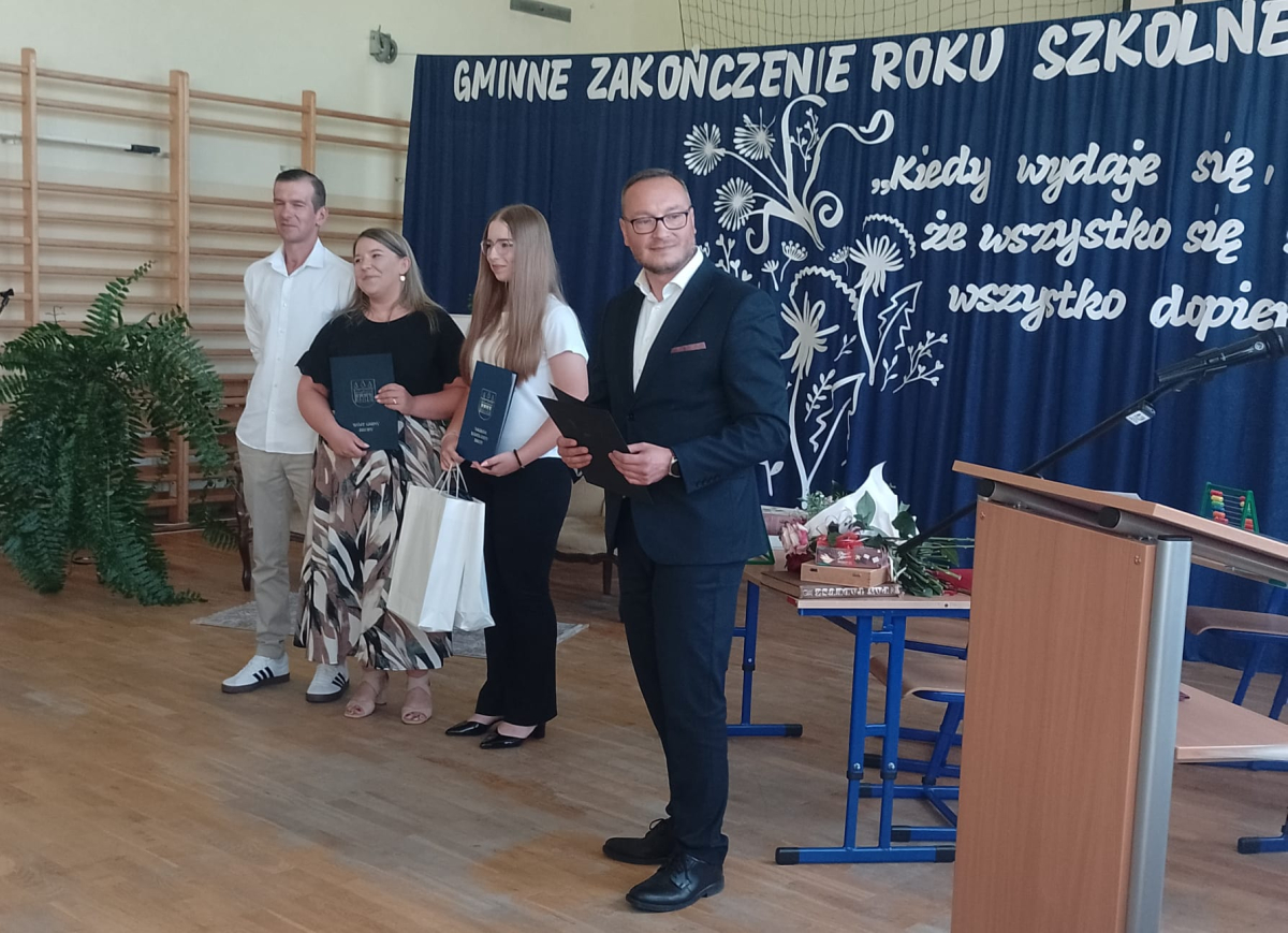 Na emeryturę odeszły dyrektor placówki - pani Nina Milanowska i dyrektor Centrum Usług Wspólnych - pani Dorota Grudnicka - Glina. Pan Wójt Ernest Kumek podziękował obydwu paniom za lata odpowiedzialnej pracy na rzecz społeczności szkolnej oraz gratulował sukcesów wyróżnionym uczniom. Całości dopełnił wzruszający, ale też pełen humoru program artystyczny.