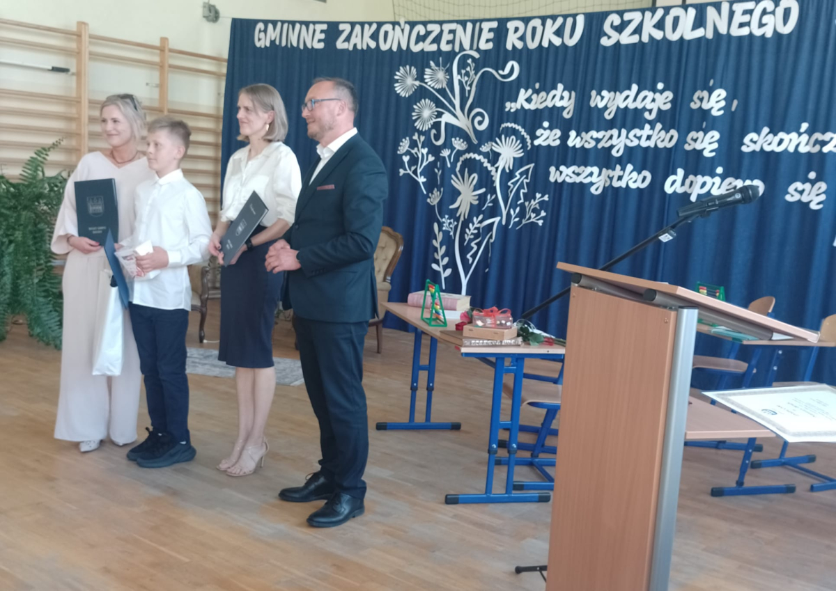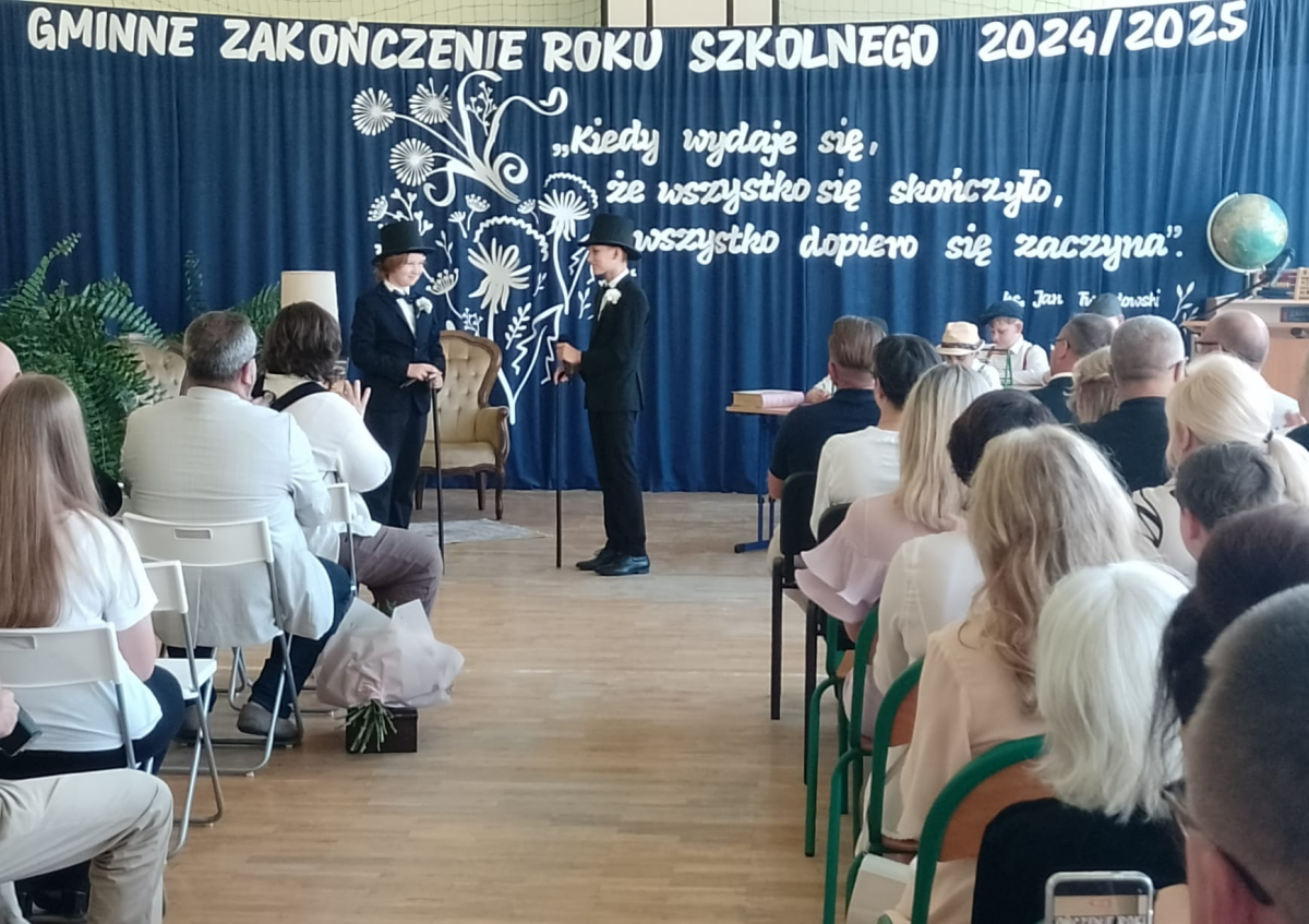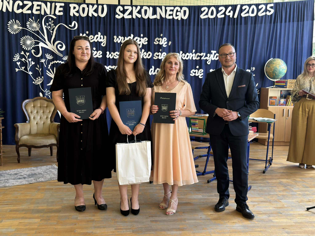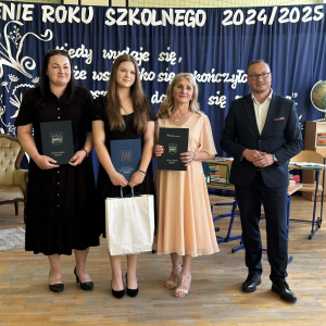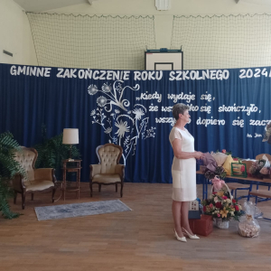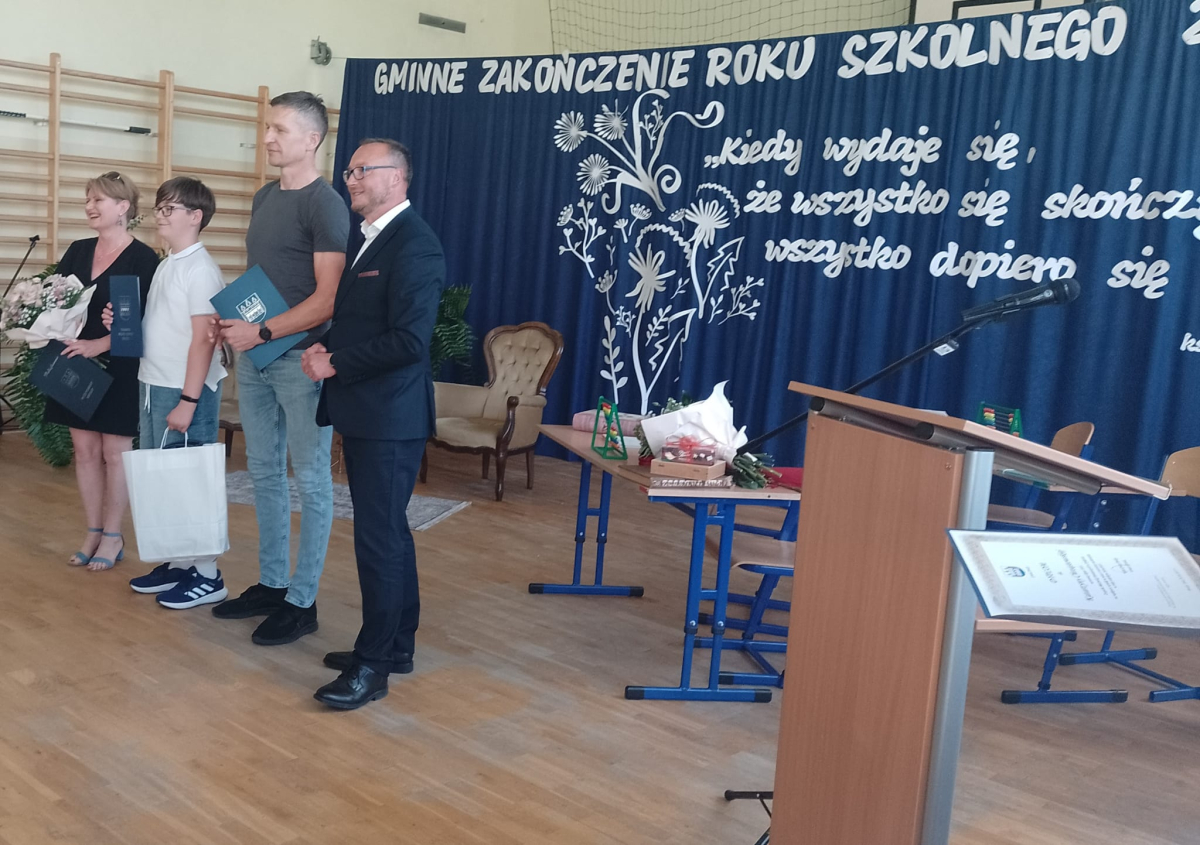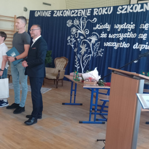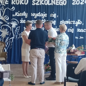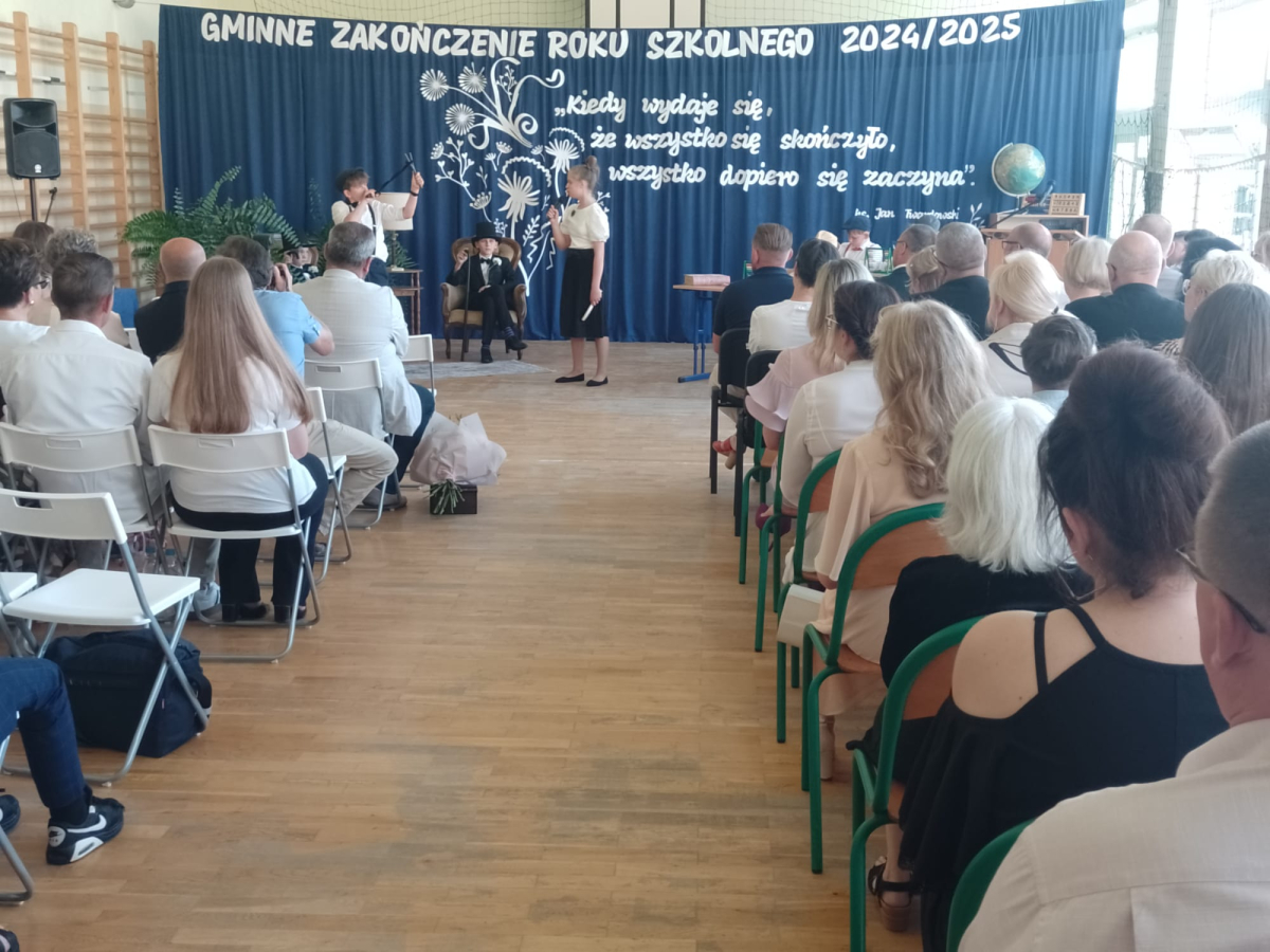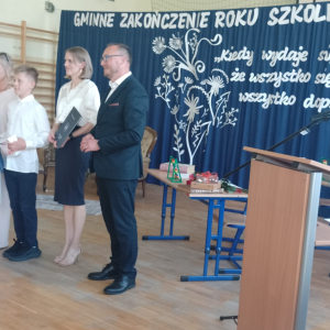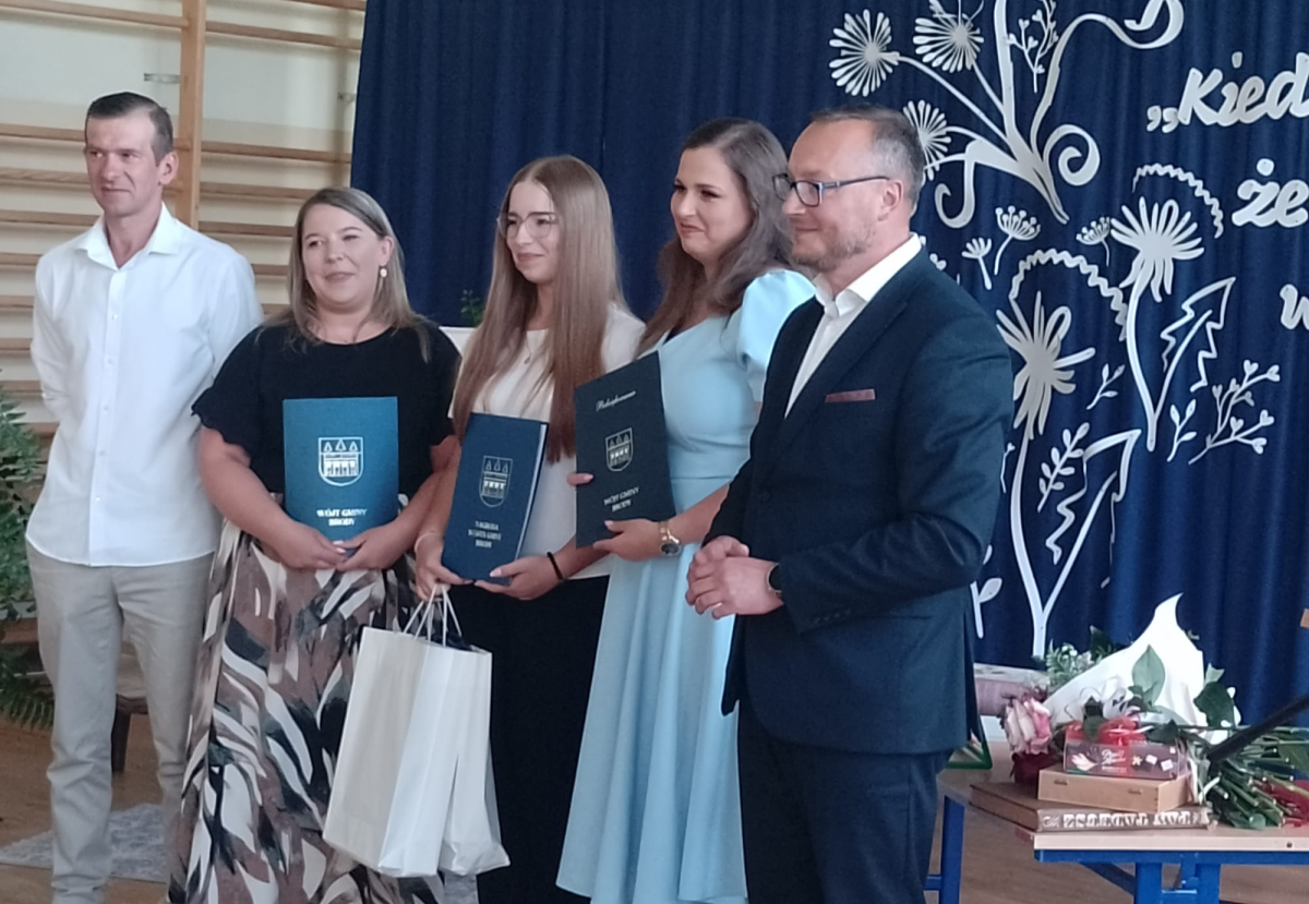 Na emeryturę odeszły dyrektor placówki - pani Nina Milanowska i dyrektor Centrum Usług Wspólnych - pani Dorota Grudnicka - Glina. Pan Wójt Ernest Kumek podziękował obydwu paniom za lata odpowiedzialnej pracy na rzecz społeczności szkolnej oraz gratulował sukcesów wyróżnionym uczniom. Całości dopełnił wzruszający, ale też pełen humoru program artystyczny.