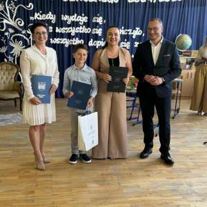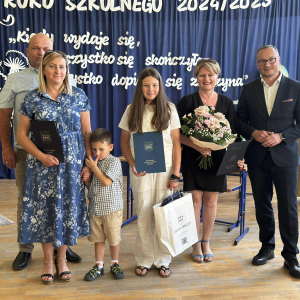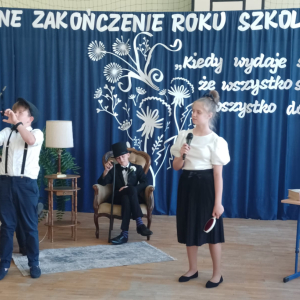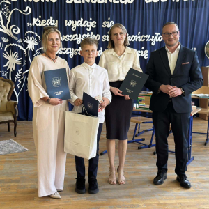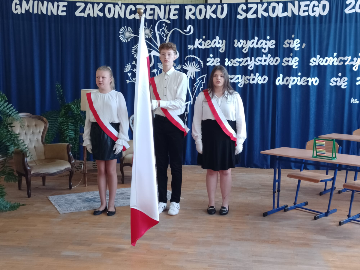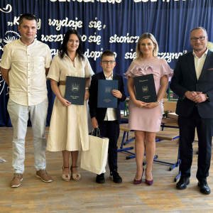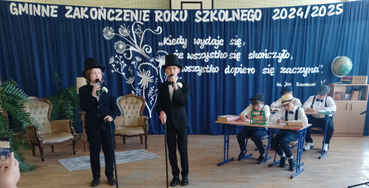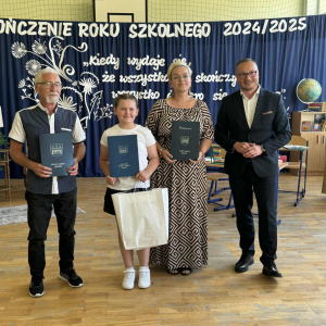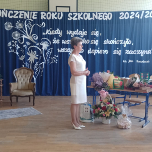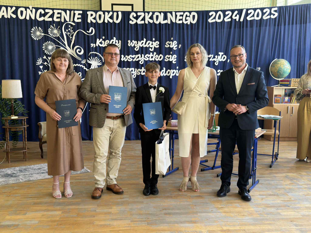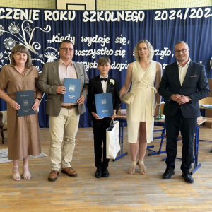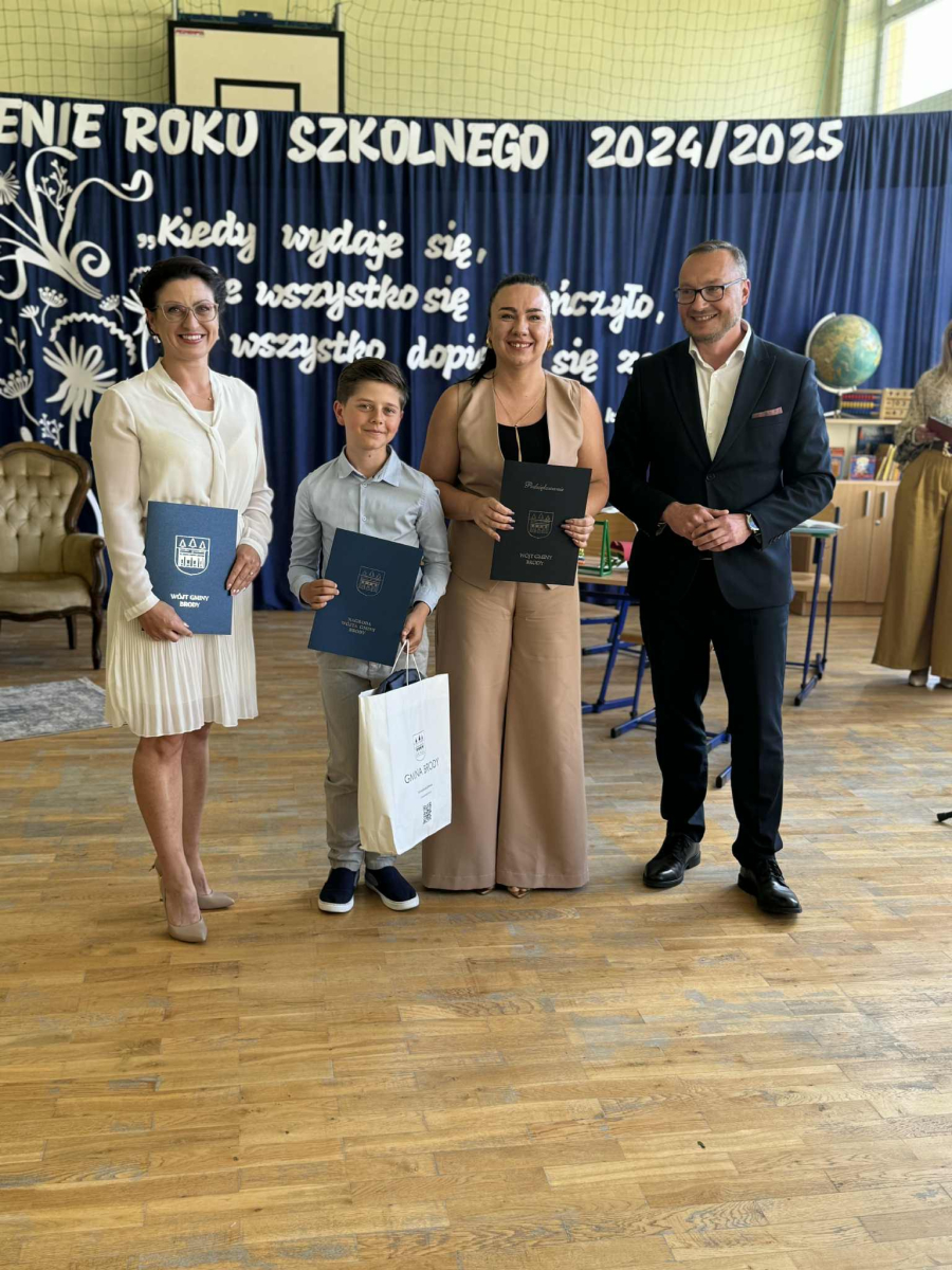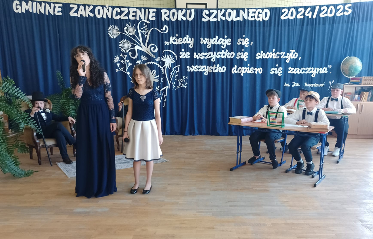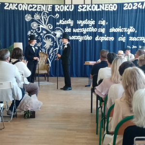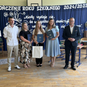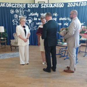 Na emeryturę odeszły dyrektor placówki - pani Nina Milanowska i dyrektor Centrum Usług Wspólnych - pani Dorota Grudnicka - Glina. Pan Wójt Ernest Kumek podziękował obydwu paniom za lata odpowiedzialnej pracy na rzecz społeczności szkolnej oraz gratulował sukcesów wyróżnionym uczniom. Całości dopełnił wzruszający, ale też pełen humoru program artystyczny.