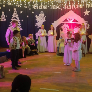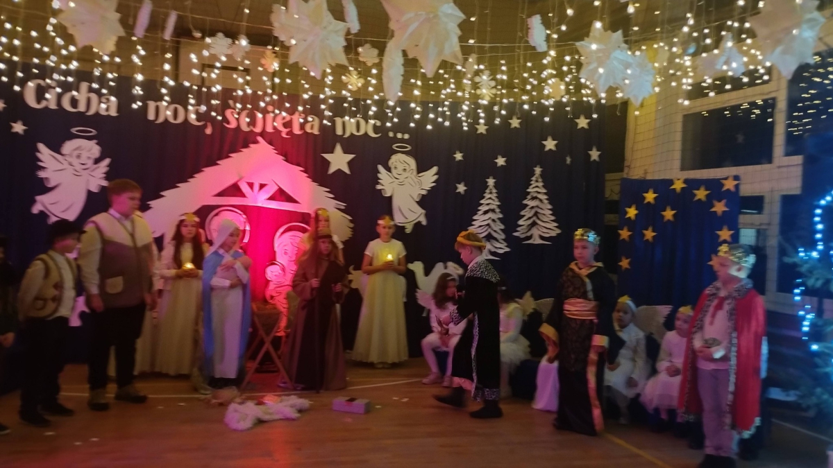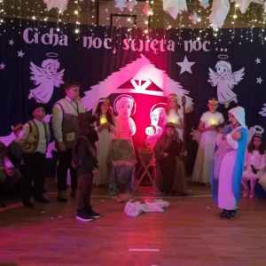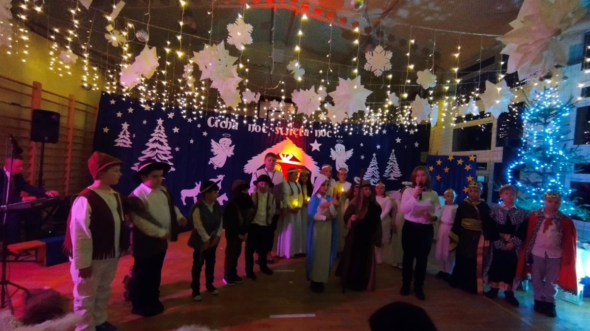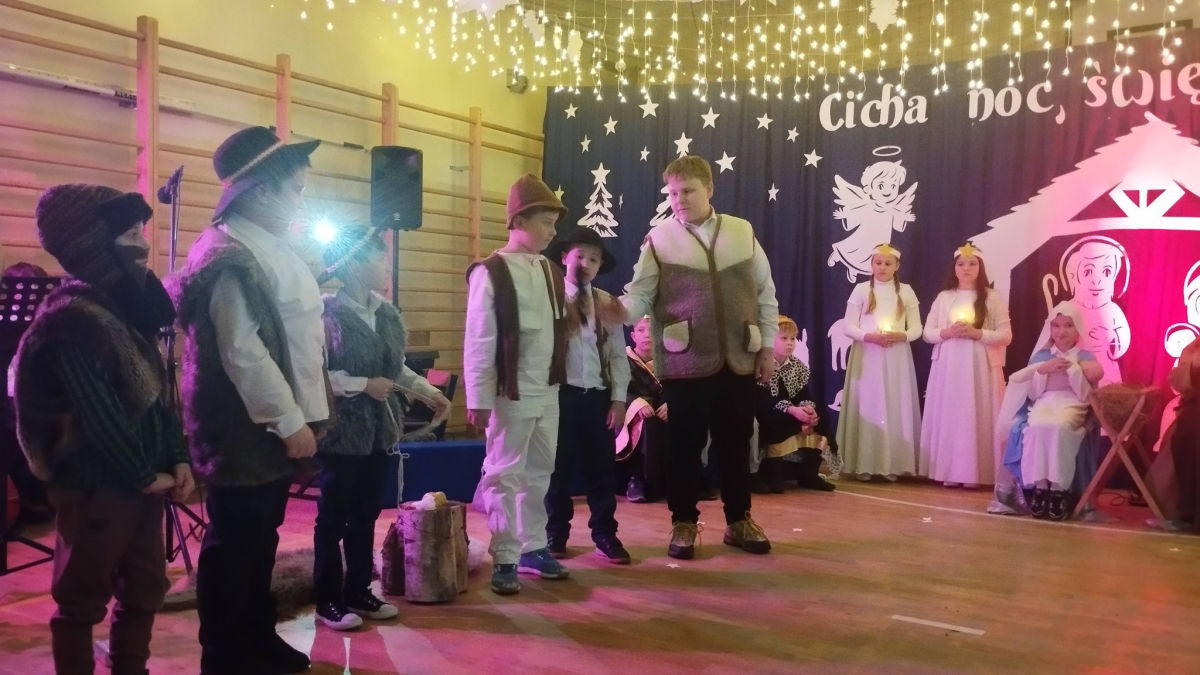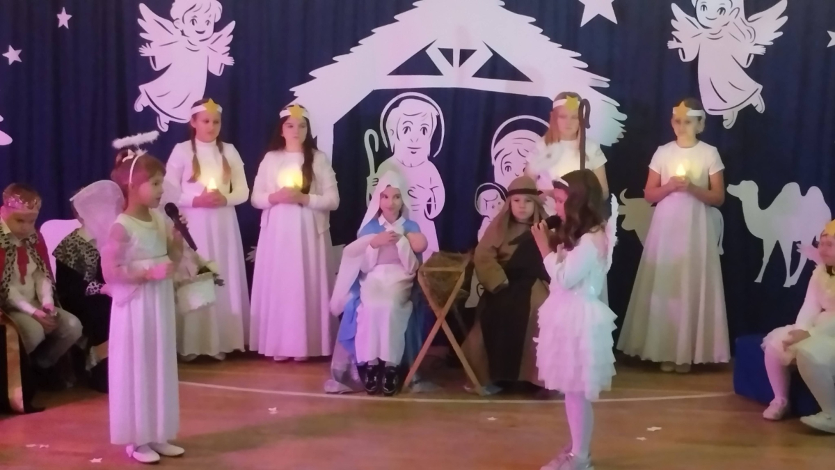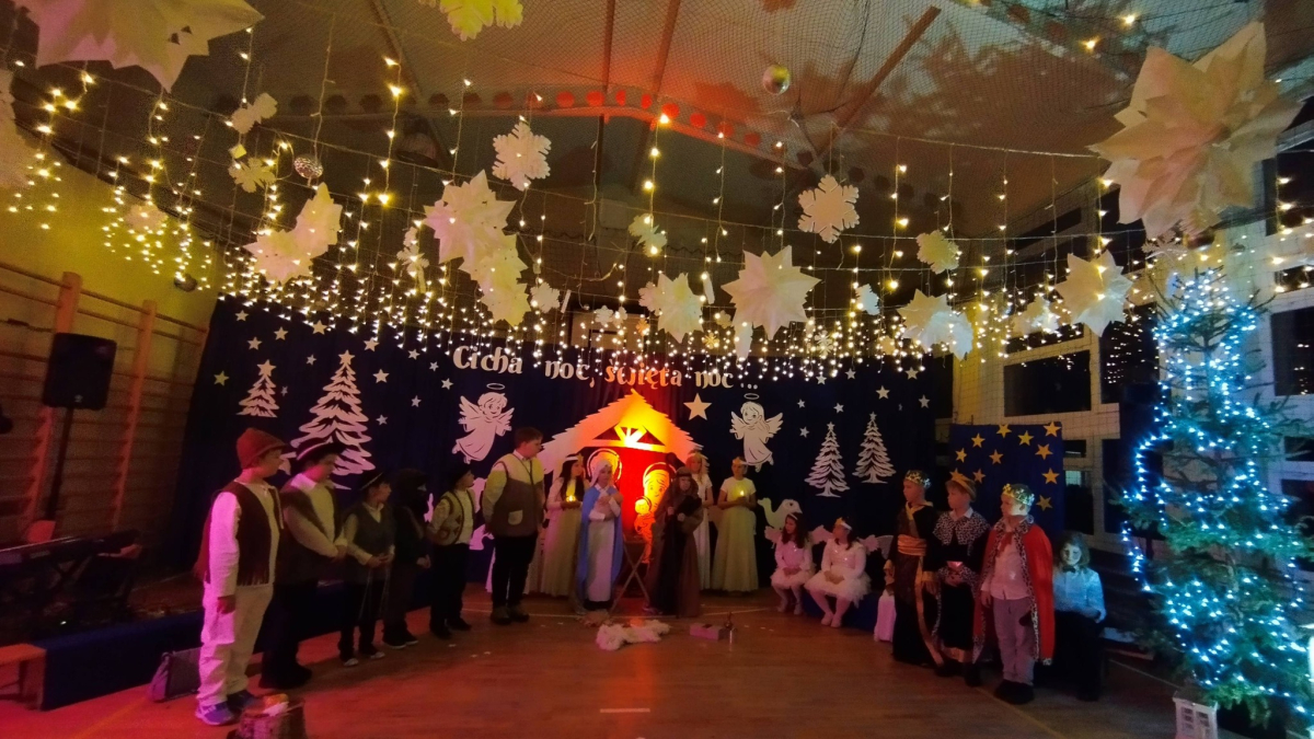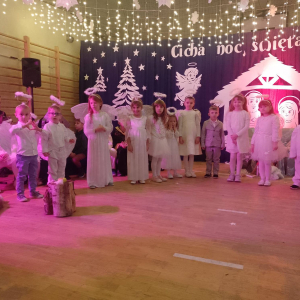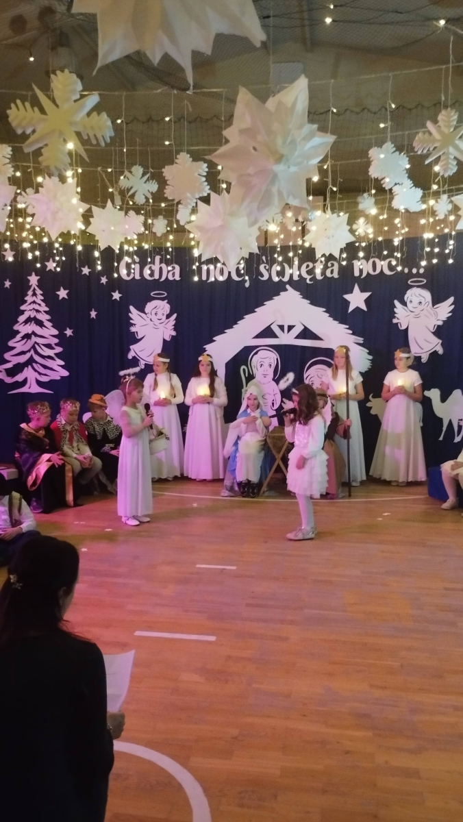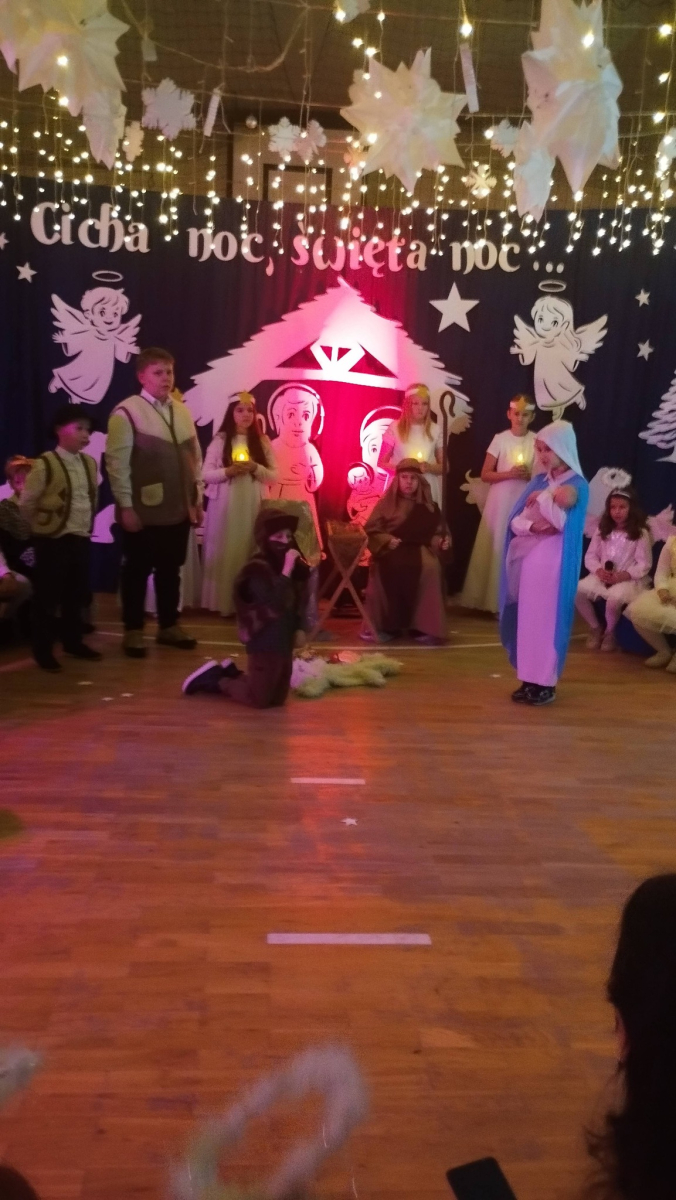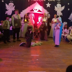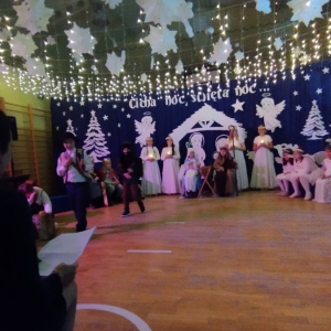 18 grudnia w naszej szkole odbyły się Jasełka Bożonarodzeniowe. Na tę piękną i ważną uroczystość przybyli zaproszeni goście: Przewodniczący Rady Gminy Brody pan Mateusz Bidziński, Radny Brodów pan Błażej Bernaciak, pełniąca obowiązki dyrektora CUW pani Marta Turek, kierownik Centrum Rehabilitacji i Edukacji Społecznej w Krynkach pani Ewa Górska, Sołtys Brodów pan Łukasz Mazur wraz z Radą Sołecką, ksiądz proboszcz parafii Krynki Wojciech Zdon, ksiądz wikary Paweł Laskowski, rodzice, dziadkowie i bliscy naszych uczniów, przyjaciele szkoły, mieszkańcy Brodów. Zgromadzeni goście obejrzeli wspaniała inscenizację wydarzeń poprzedzających narodzenie Jezusa wzbogaconą kolędami, tańcami aniołków, żywiołową muzyką kapeli. Nie zabrakło zarówno humorystycznych, jak i wzruszających scen. Niespodzianką wieczoru był znakomity występ chóru Per La Gloria pod kierunkiem pana Szymona Pochecia. Wrażeniom nie było końca, gdyż po występie chóru do kolędowania włączyły się najmłodsze dzieci z oddziałów przedszkolnych, uczniowie klas IV, V i VI. Na koniec cała sala rozbrzmiewała śpiewem znanych kolęd, któremu przewodniczyła pani Kamila Woś. Zaproszeni goście złożyli na ręce pani dyrektor szkoły, Moniki Krawczyk najserdeczniejsze świąteczne życzenia, po których nastąpiło odczytanie Ewangelii i łamanie się opłatkiem. Nasi wspaniali Rodzice jak zawsze stanęli na wysokości zadania i przygotowali słodki poczęstunek dla wszystkich oraz upominki dla dzieci. Jasełka przygotowali uczniowie klas I, II, III, IV, V, VI wraz z nauczycielami, panią Urszulą Majewską, Katarzyną Murawską, Katarzyną Klepacz i Szymonem Pocheciem. To był niezapomniany wieczór, poruszający serca i wprowadzający w rodzinną, ciepłą, pełną życzliwości i miłości świąteczną atmosferę.