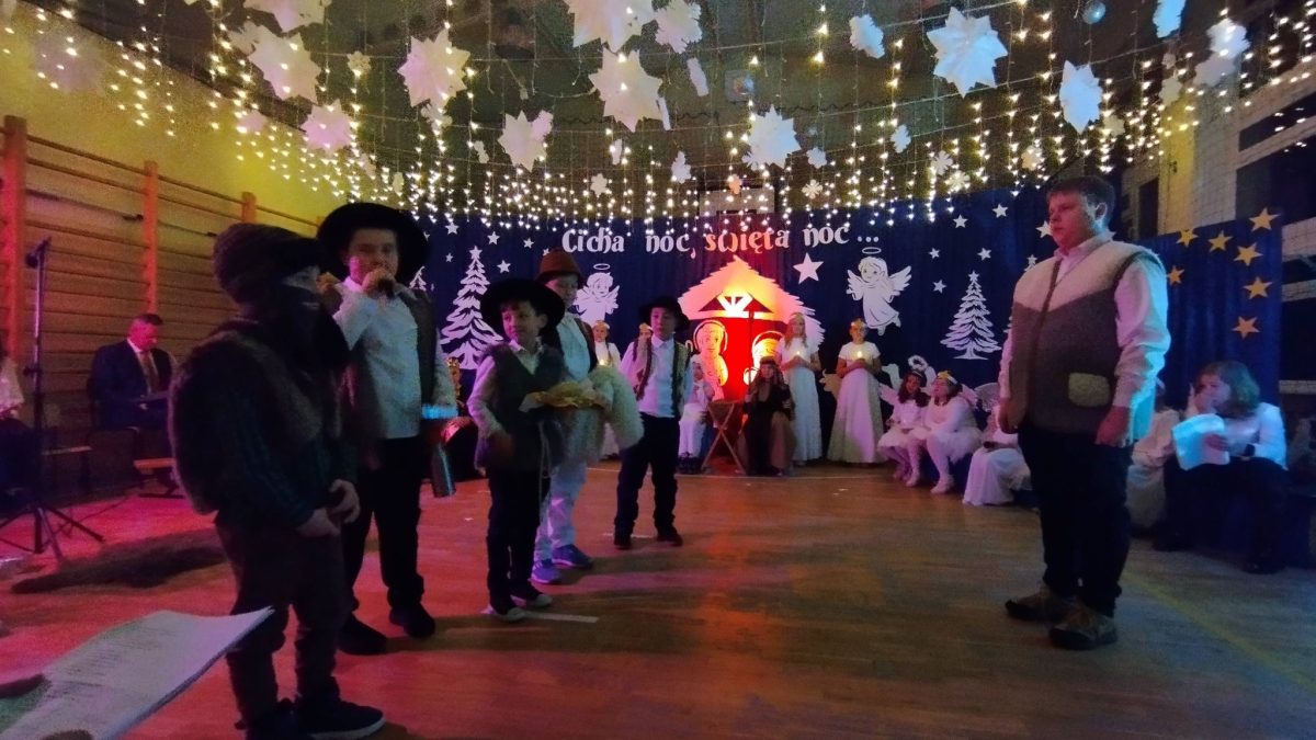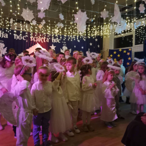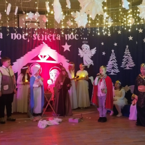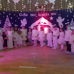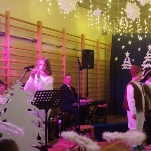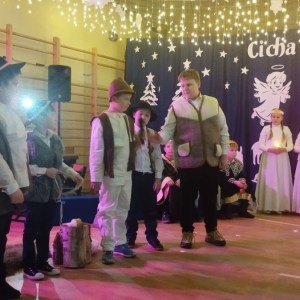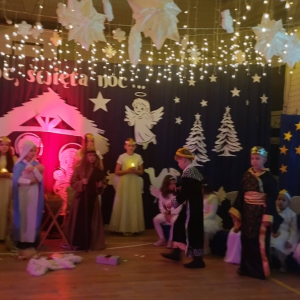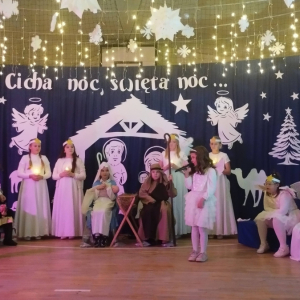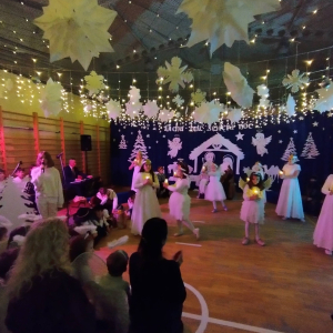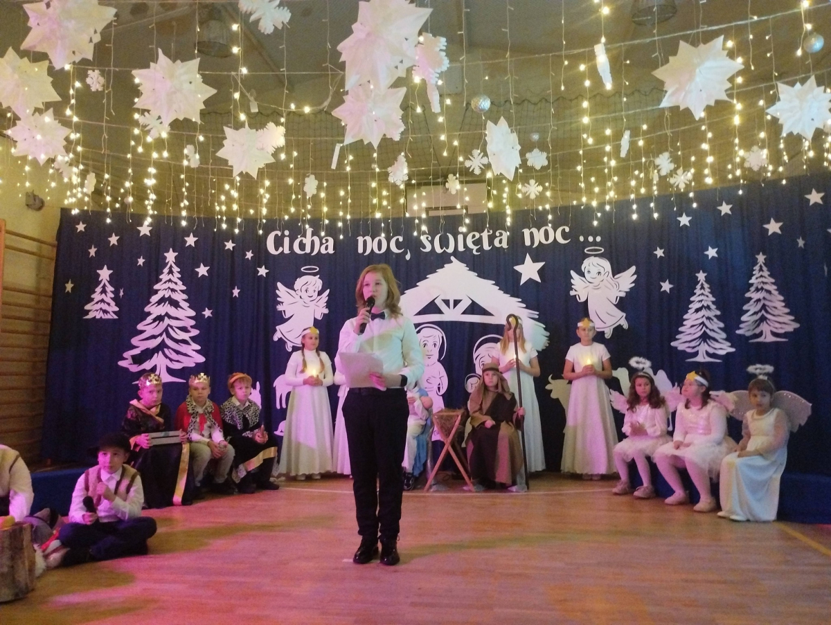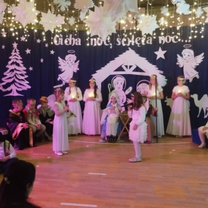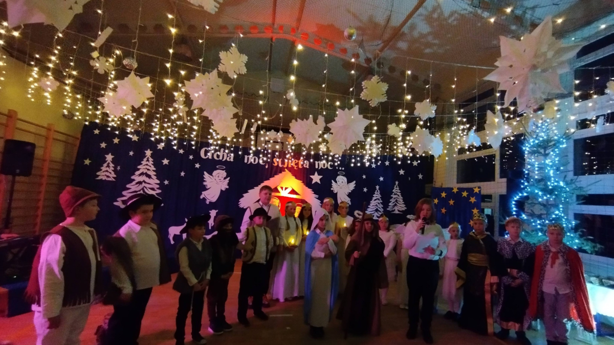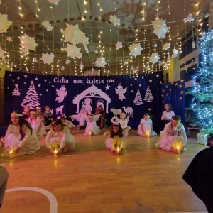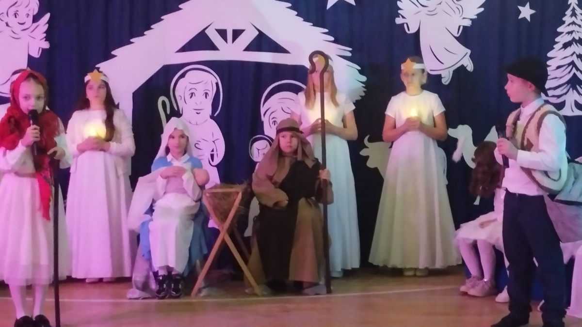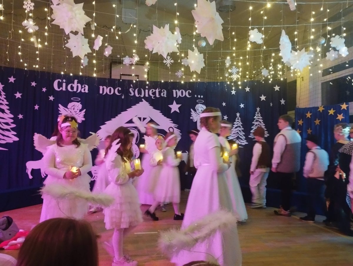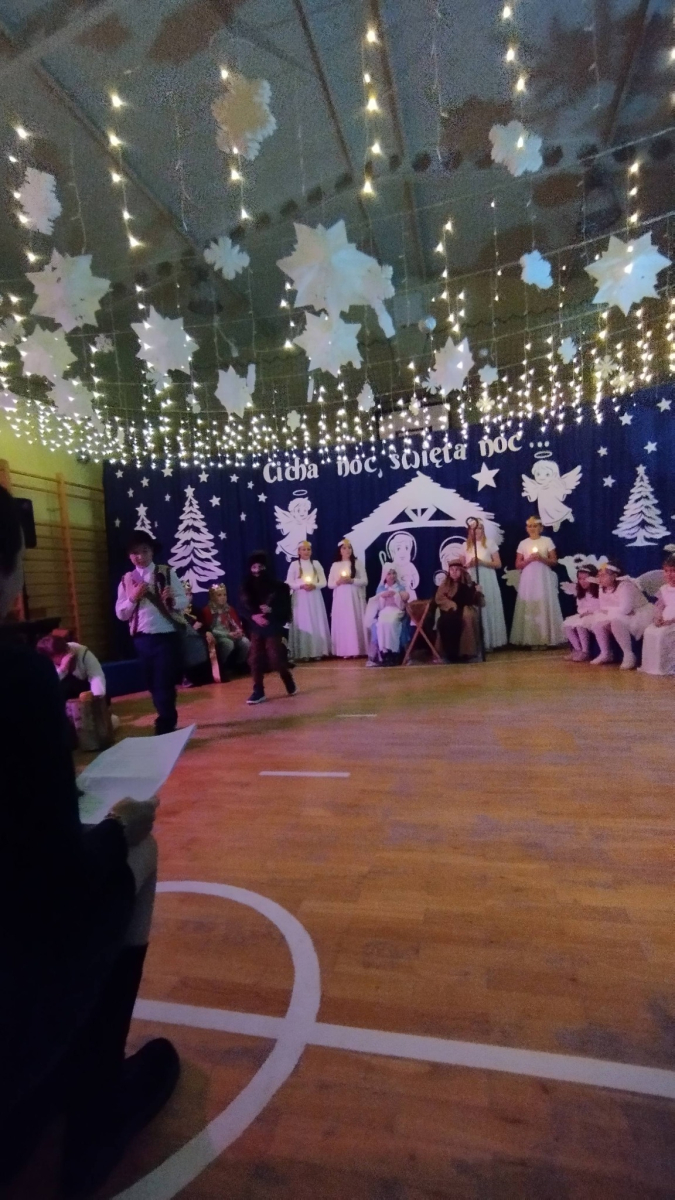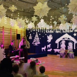 18 grudnia w naszej szkole odbyły się Jasełka Bożonarodzeniowe. Na tę piękną i ważną uroczystość przybyli zaproszeni goście: Przewodniczący Rady Gminy Brody pan Mateusz Bidziński, Radny Brodów pan Błażej Bernaciak, pełniąca obowiązki dyrektora CUW pani Marta Turek, kierownik Centrum Rehabilitacji i Edukacji Społecznej w Krynkach pani Ewa Górska, Sołtys Brodów pan Łukasz Mazur wraz z Radą Sołecką, ksiądz proboszcz parafii Krynki Wojciech Zdon, ksiądz wikary Paweł Laskowski, rodzice, dziadkowie i bliscy naszych uczniów, przyjaciele szkoły, mieszkańcy Brodów. Zgromadzeni goście obejrzeli wspaniała inscenizację wydarzeń poprzedzających narodzenie Jezusa wzbogaconą kolędami, tańcami aniołków, żywiołową muzyką kapeli. Nie zabrakło zarówno humorystycznych, jak i wzruszających scen. Niespodzianką wieczoru był znakomity występ chóru Per La Gloria pod kierunkiem pana Szymona Pochecia. Wrażeniom nie było końca, gdyż po występie chóru do kolędowania włączyły się najmłodsze dzieci z oddziałów przedszkolnych, uczniowie klas IV, V i VI. Na koniec cała sala rozbrzmiewała śpiewem znanych kolęd, któremu przewodniczyła pani Kamila Woś. Zaproszeni goście złożyli na ręce pani dyrektor szkoły, Moniki Krawczyk najserdeczniejsze świąteczne życzenia, po których nastąpiło odczytanie Ewangelii i łamanie się opłatkiem. Nasi wspaniali Rodzice jak zawsze stanęli na wysokości zadania i przygotowali słodki poczęstunek dla wszystkich oraz upominki dla dzieci. Jasełka przygotowali uczniowie klas I, II, III, IV, V, VI wraz z nauczycielami, panią Urszulą Majewską, Katarzyną Murawską, Katarzyną Klepacz i Szymonem Pocheciem. To był niezapomniany wieczór, poruszający serca i wprowadzający w rodzinną, ciepłą, pełną życzliwości i miłości świąteczną atmosferę.