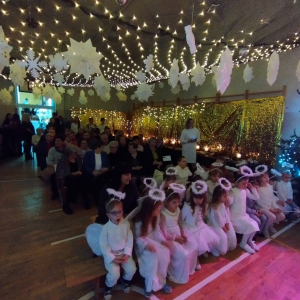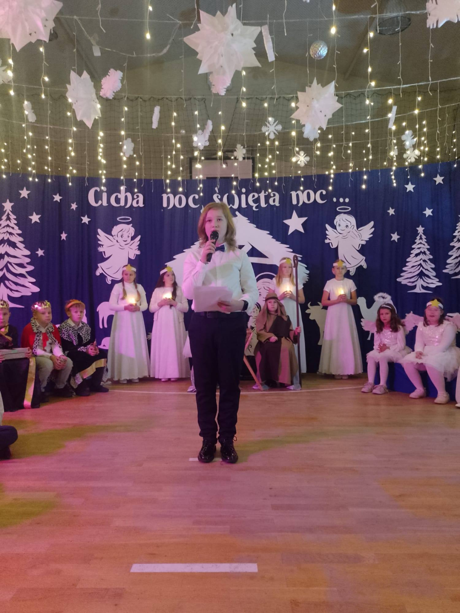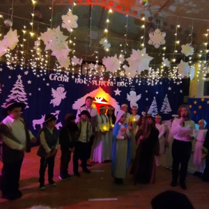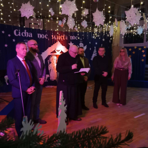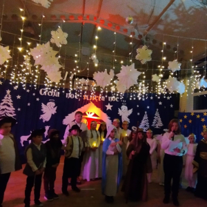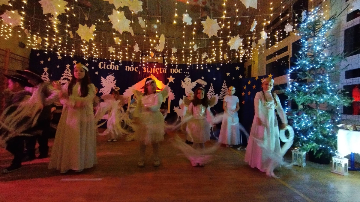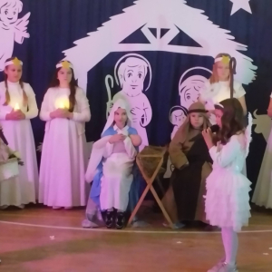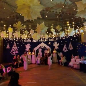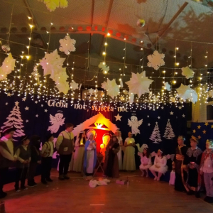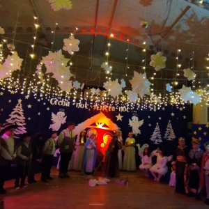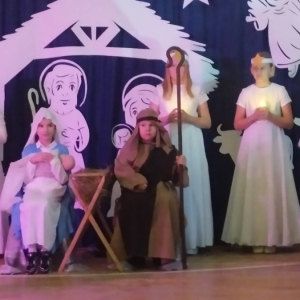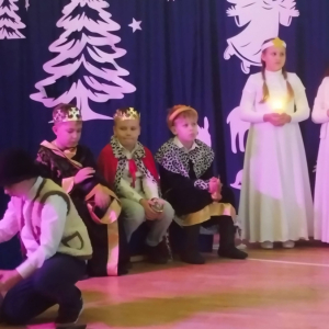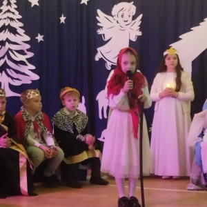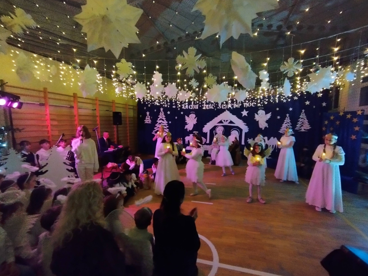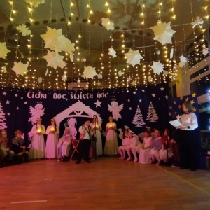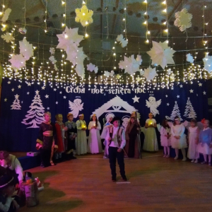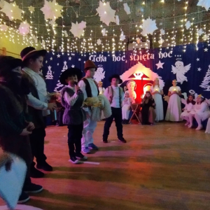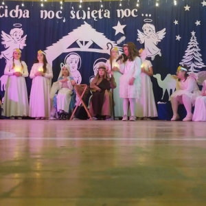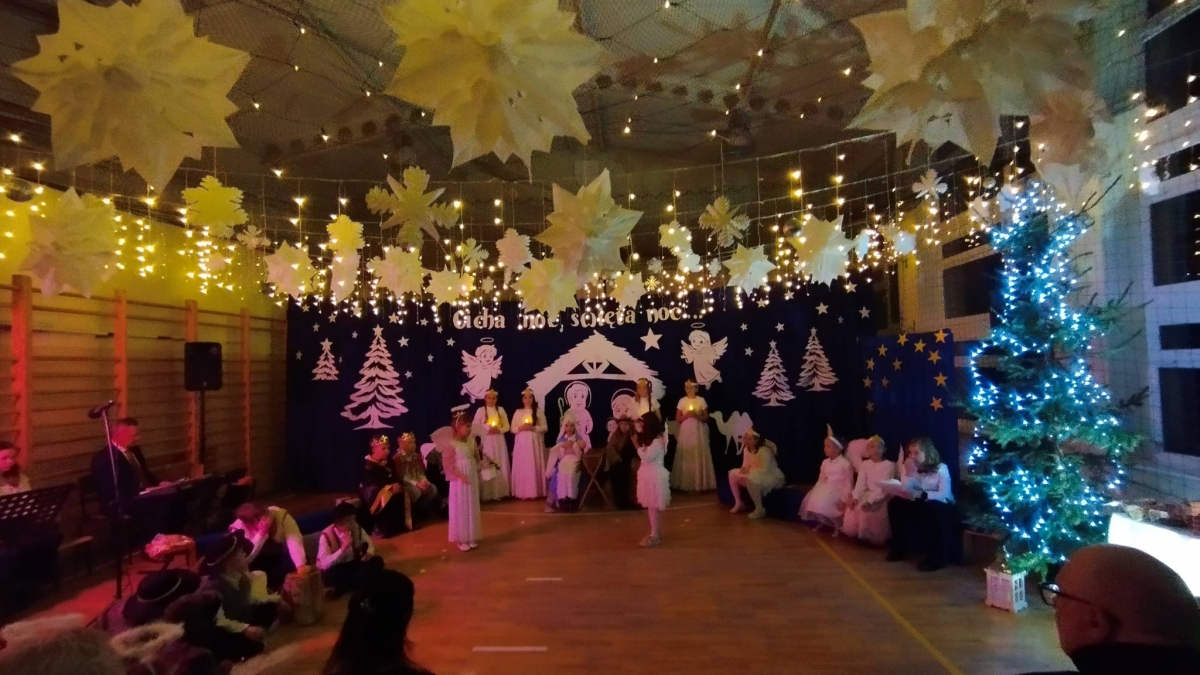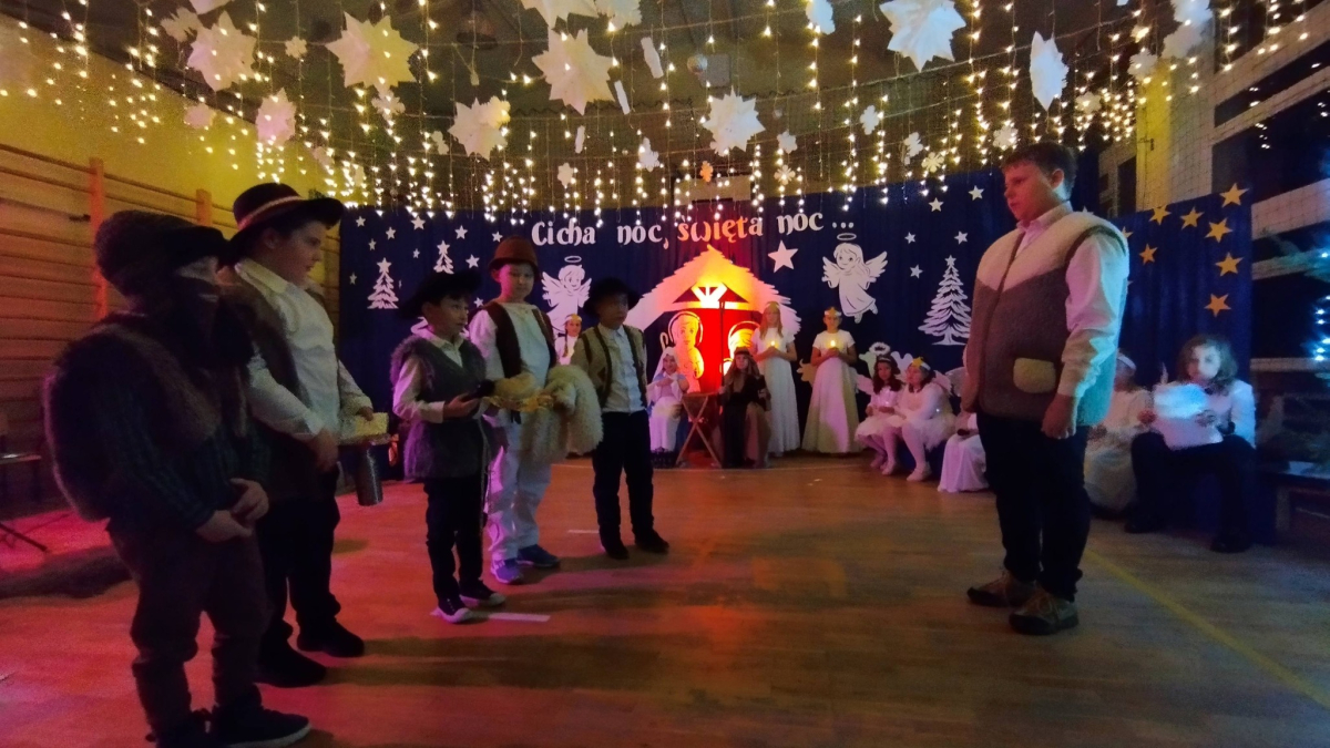 18 grudnia w naszej szkole odbyły się Jasełka Bożonarodzeniowe. Na tę piękną i ważną uroczystość przybyli zaproszeni goście: Przewodniczący Rady Gminy Brody pan Mateusz Bidziński, Radny Brodów pan Błażej Bernaciak, pełniąca obowiązki dyrektora CUW pani Marta Turek, kierownik Centrum Rehabilitacji i Edukacji Społecznej w Krynkach pani Ewa Górska, Sołtys Brodów pan Łukasz Mazur wraz z Radą Sołecką, ksiądz proboszcz parafii Krynki Wojciech Zdon, ksiądz wikary Paweł Laskowski, rodzice, dziadkowie i bliscy naszych uczniów, przyjaciele szkoły, mieszkańcy Brodów. Zgromadzeni goście obejrzeli wspaniała inscenizację wydarzeń poprzedzających narodzenie Jezusa wzbogaconą kolędami, tańcami aniołków, żywiołową muzyką kapeli. Nie zabrakło zarówno humorystycznych, jak i wzruszających scen. Niespodzianką wieczoru był znakomity występ chóru Per La Gloria pod kierunkiem pana Szymona Pochecia. Wrażeniom nie było końca, gdyż po występie chóru do kolędowania włączyły się najmłodsze dzieci z oddziałów przedszkolnych, uczniowie klas IV, V i VI. Na koniec cała sala rozbrzmiewała śpiewem znanych kolęd, któremu przewodniczyła pani Kamila Woś. Zaproszeni goście złożyli na ręce pani dyrektor szkoły, Moniki Krawczyk najserdeczniejsze świąteczne życzenia, po których nastąpiło odczytanie Ewangelii i łamanie się opłatkiem. Nasi wspaniali Rodzice jak zawsze stanęli na wysokości zadania i przygotowali słodki poczęstunek dla wszystkich oraz upominki dla dzieci. Jasełka przygotowali uczniowie klas I, II, III, IV, V, VI wraz z nauczycielami, panią Urszulą Majewską, Katarzyną Murawską, Katarzyną Klepacz i Szymonem Pocheciem. To był niezapomniany wieczór, poruszający serca i wprowadzający w rodzinną, ciepłą, pełną życzliwości i miłości świąteczną atmosferę.