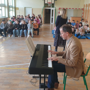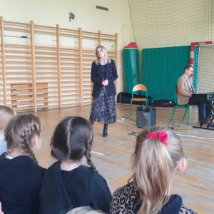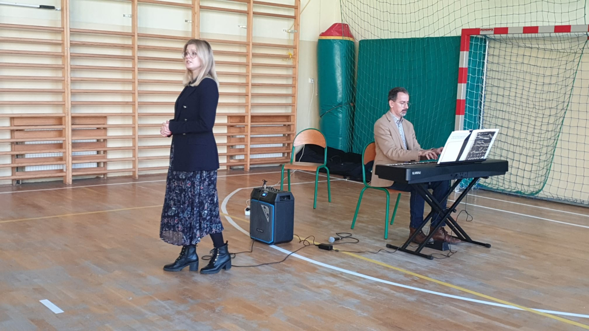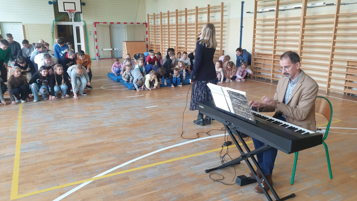 W naszej szkole gościliśmy przedstawicieli Filharmonii Świętokrzyskiej im.Oskara Kolberga z Kielc. Koncert pt.Muzyczni Wieszcze przybliżył nam kompozycje Ignacego Padererewskiego, Stanisława Muniuszki oraz Fryderyka Chopina. W zaprezentowanym repertuarze Pani Aleksandry Deryng-Jaroń oraz Pana Przemysława Rutkowskiego znalazły się m.in. pieśni, mazurki oraz polonezy. Ten wspaniały szkolny koncert kameralny był dla uczniów niecodzienną lekcją jak słuchać i poznawać muzykę poważną a artyści zapowiedzieli już kolejne występy w naszej szkole z nowym repertuarem.