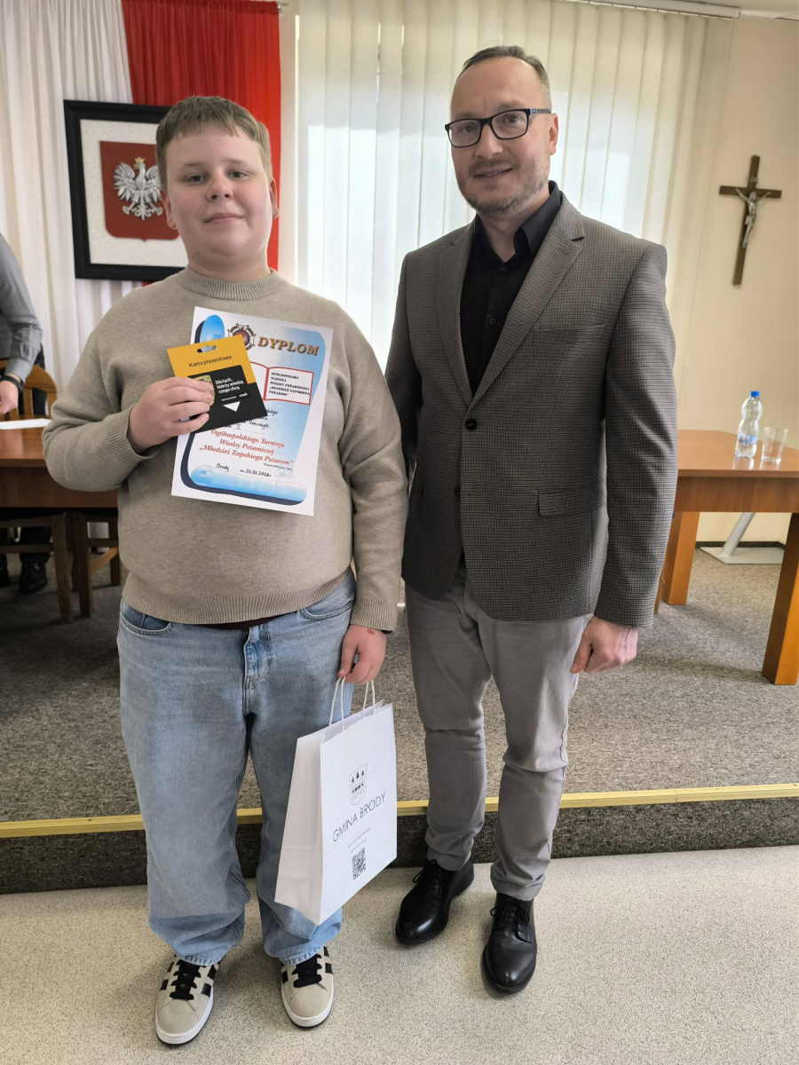 25 marca w Urzędzie Gminy Brody odbyły się gminne eliminacje do Ogólnopolskiego Turnieju Wiedzy Pożarniczej "Młodzież zapobiega pożarom". Naszą szkołę godnie reprezentował Jakub Szymański, który zajął III miejsce w kategorii klas V-VIII. Serdecznie gratulujemy i życzymy dalszych sukcesów!