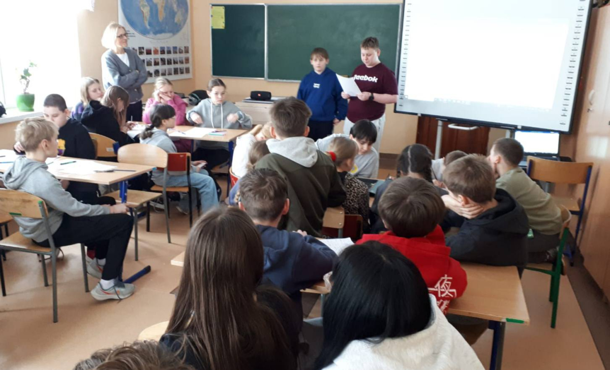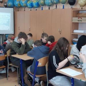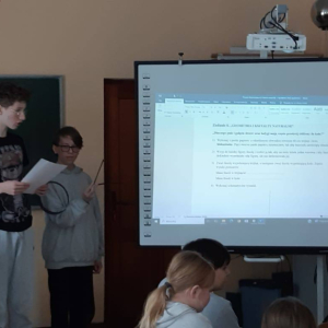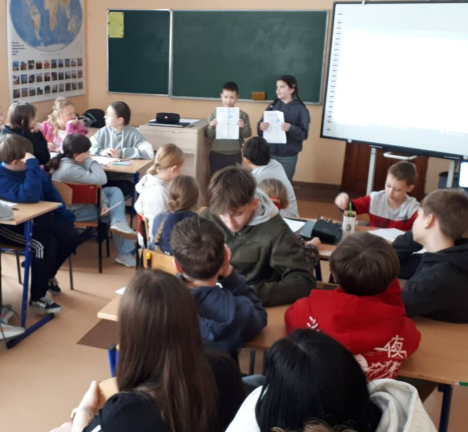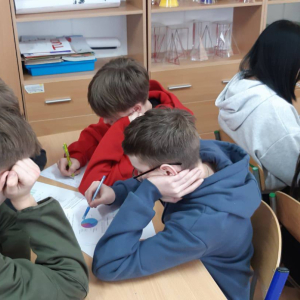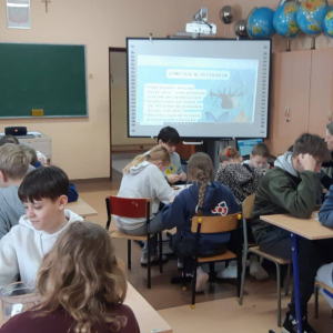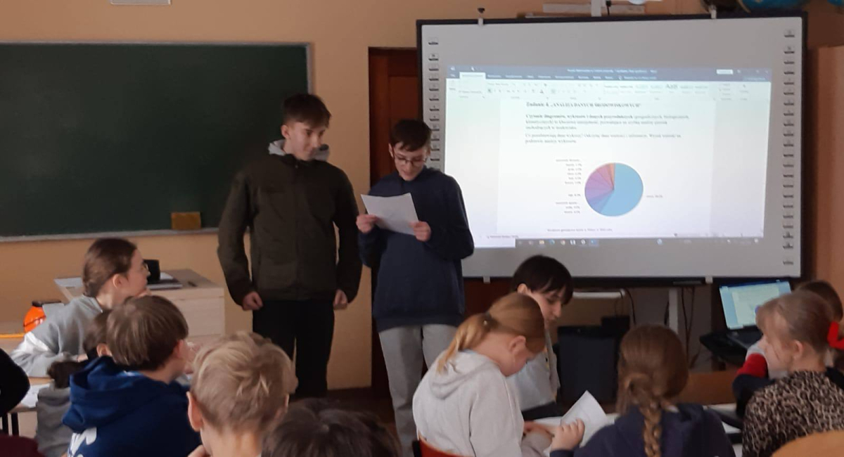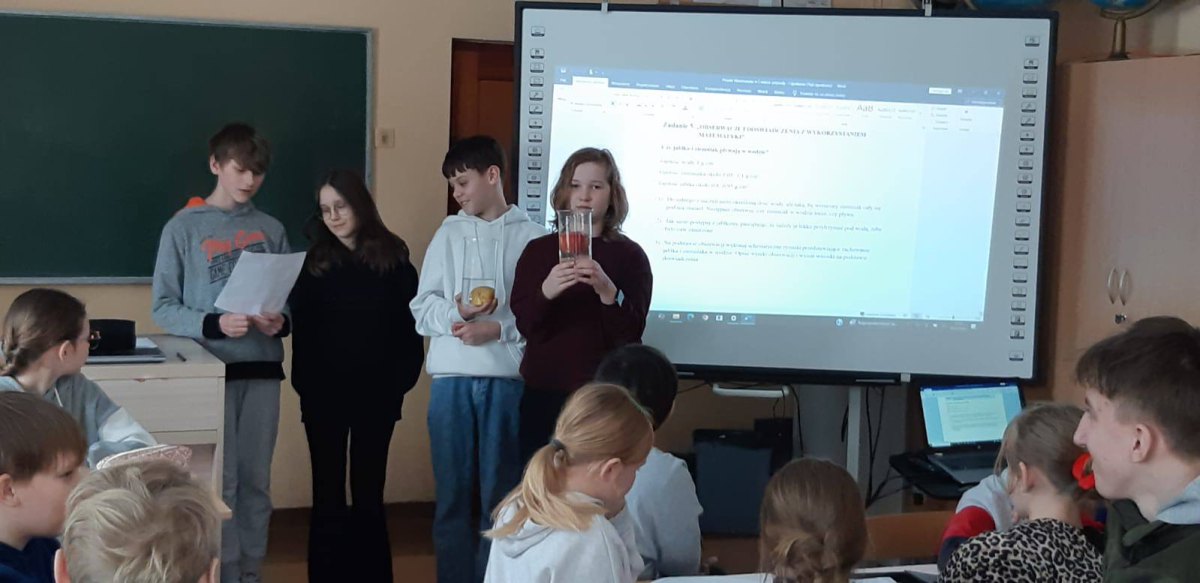 18 lutego uczniowie klas IV – VIII rozpoczęli realizację szkolnego interdyscyplinarnego projektu „Matematyka w świecie przyrody”, którego celem jest odkrywanie i zrozumienie związków między matematyką a otaczającą nas przyrodą. W trakcie spotkania obejrzeli film „Związki matematyki i przyrody”, z wielkim zaangażowaniem wykonali pierwsze praktyczne zadania oraz dokonali ich prezentacji.