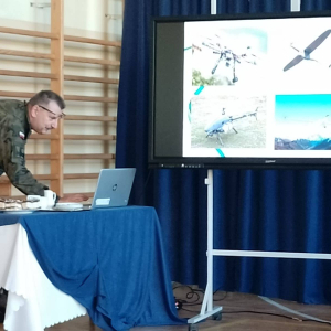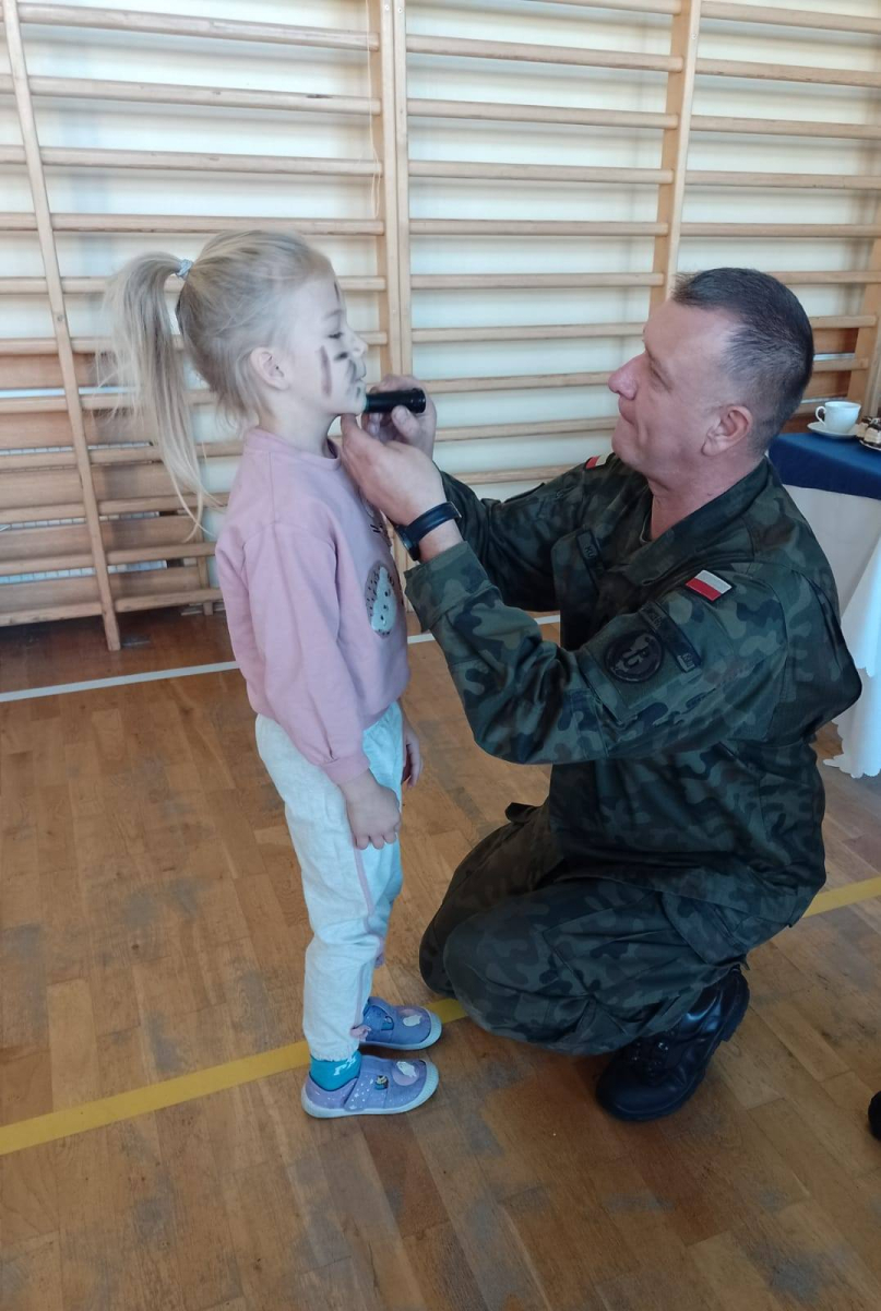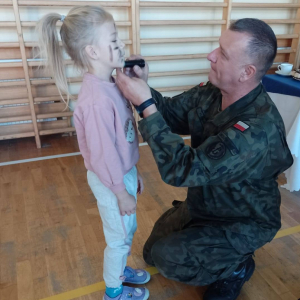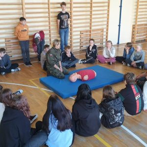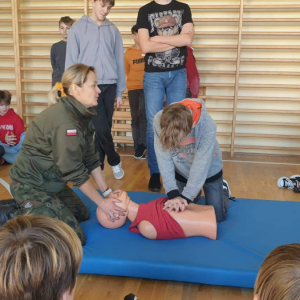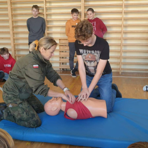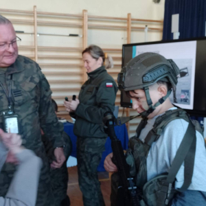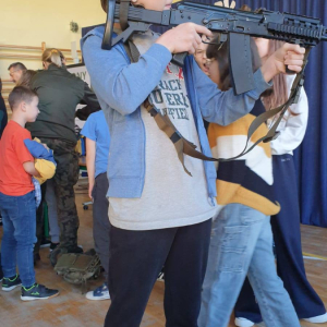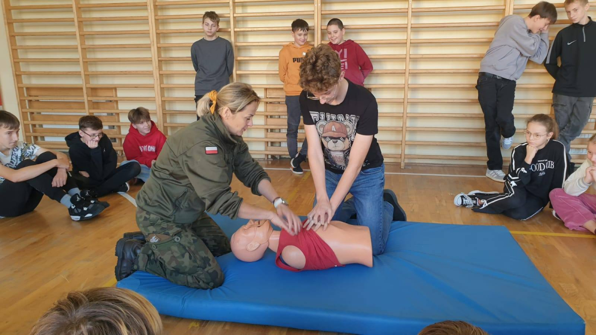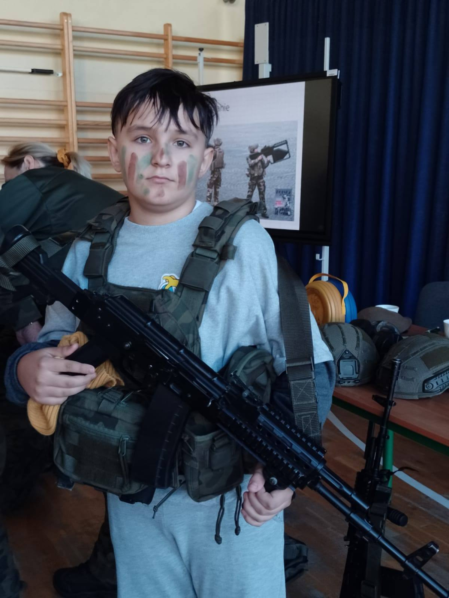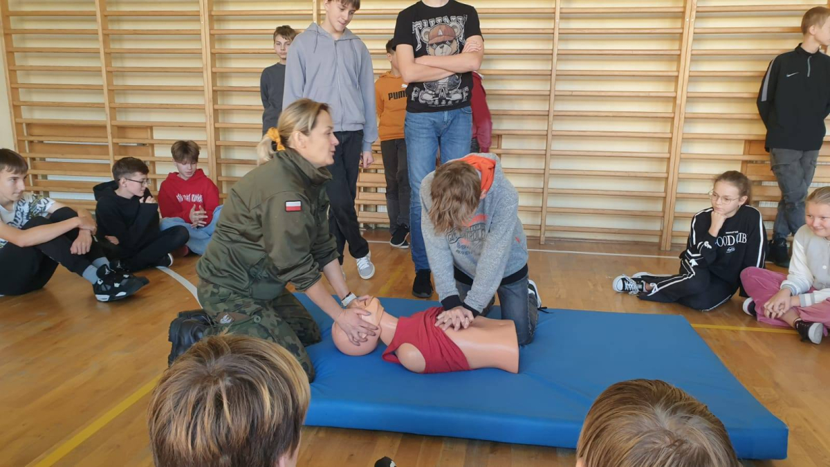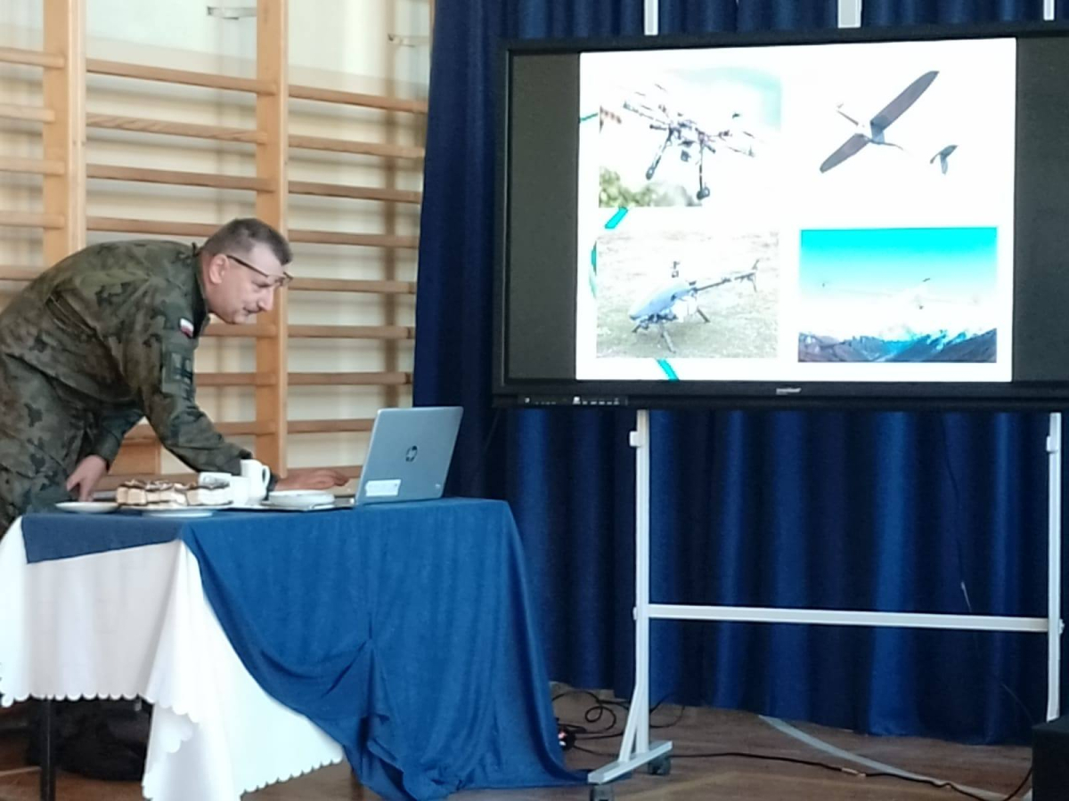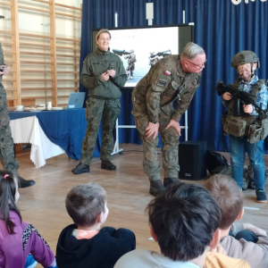 21 października naszą szkołę odwiedzili Żołnierze 10 Świętokrzyskiej Brygady Obrony Terytorialnej w Kielcach 103 Batalion Lekkiej Piechoty w Ostrowcu Świętokrzyskim Sekcja S9 Współpracy Cywilno wojskowej. Byli to: starszy szeregowy Magdalena Norman, starszy kapral Paweł Ozinkiewicz, kapral Krzysztof Zbrożyna i sierżant Artur Kulibab. Żołnierze przeprowadzili szkolenie dla uczniów, podczas którego uczyli zasad udzielania pierwszej pomocy przedmedycznej, poruszali ważne tematy dotyczące bezpieczeństwa i zachowania się w sytuacji zagrożenia oraz przećwiczyli z uczniami próbną ewakuację. Najwięcej frajdy sprawiły uczniom praktyczne wojskowe ćwiczenia: zbiórka w dwuszeregu, marsz, robienie pompek oraz przymierzanie kamizelek kuloodpornych i wojskowych hełmów. Dziękujemy za tę cenną lekcję.