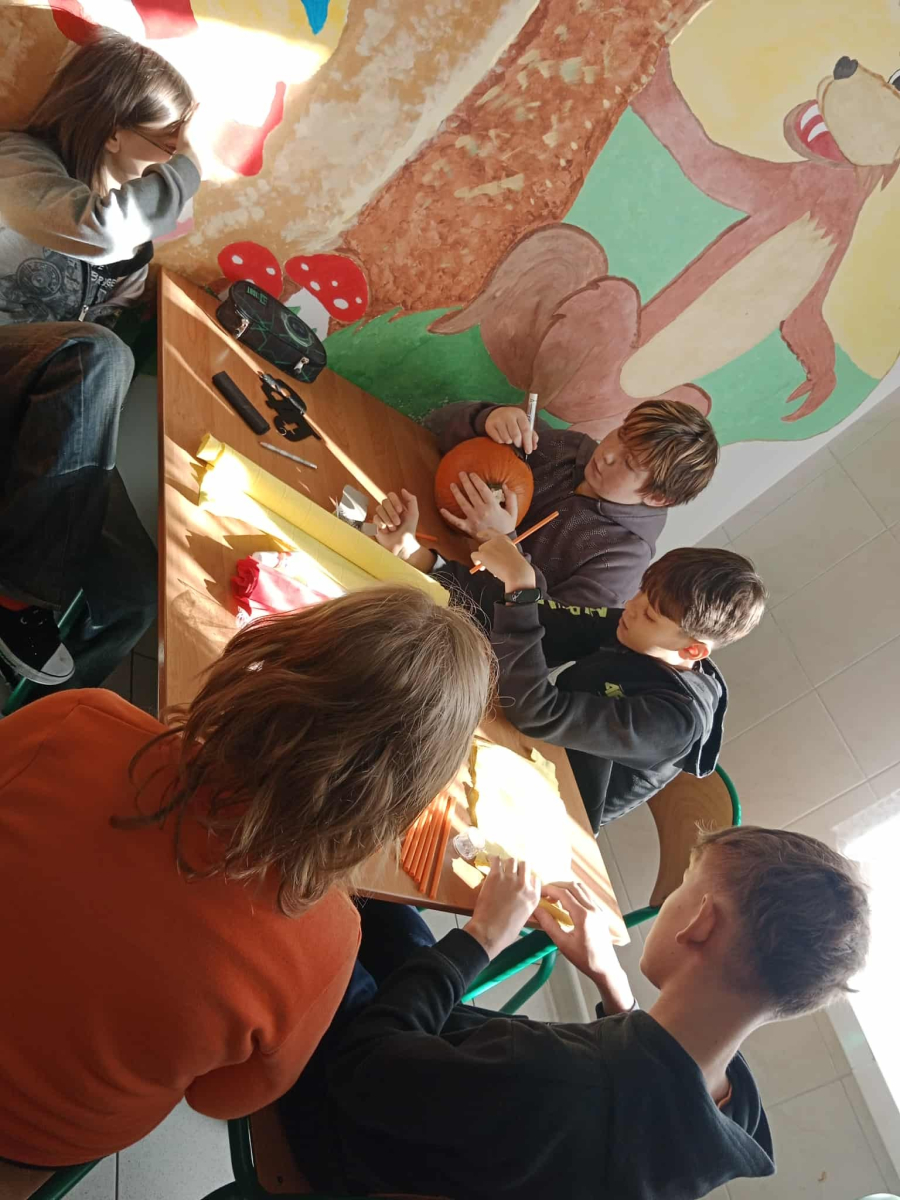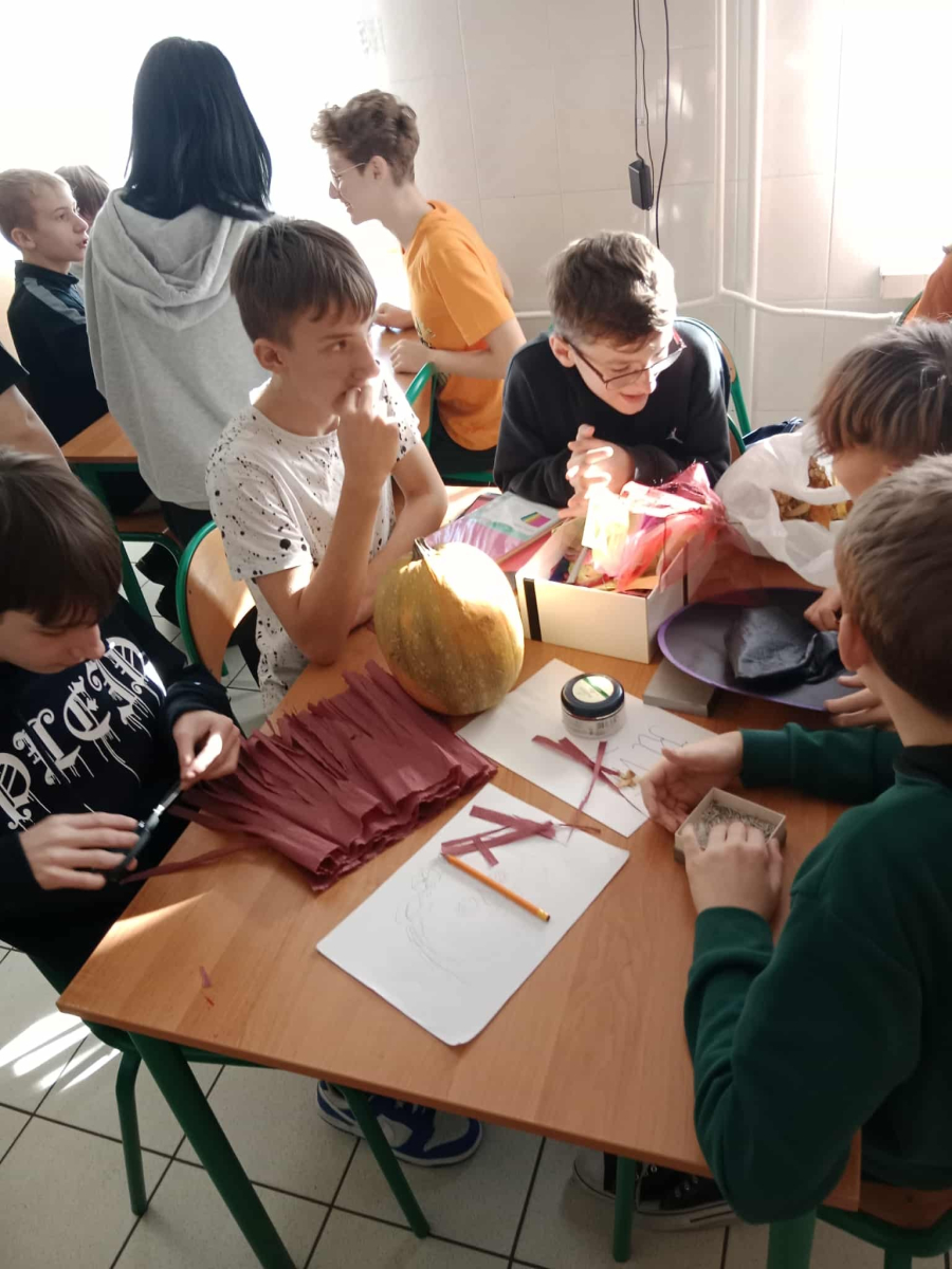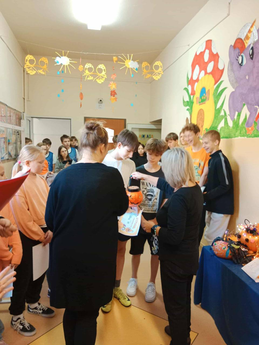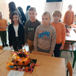 W miniony piątek, 31 października, obchodziliśmy szkolne Święto Dyni. Z tej okazji w uczniowskich ubiorach dominował kolor pomarańczowy, gdyż chronił on przed niespodziewanym pytaniem na lekcjach. Uczniowie wzięli także udział w międzyklasowym konkursie na najpiękniej ozdobioną dynię. Efekty ich pracy były zaskakujące, bowiem kreatywność naszych podopiecznych nie ma granic!