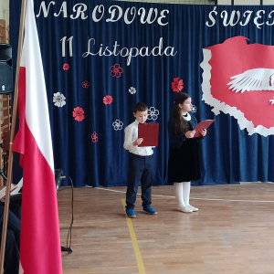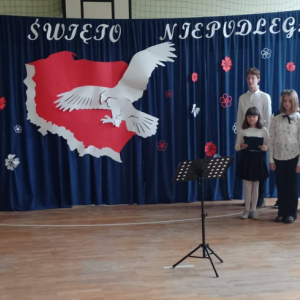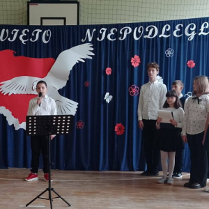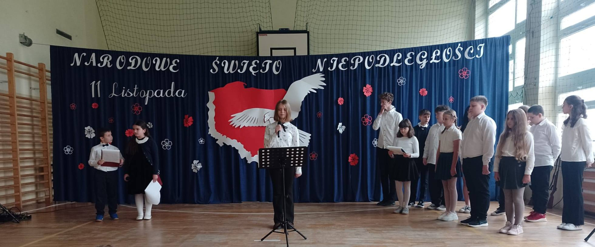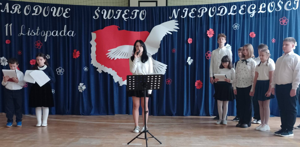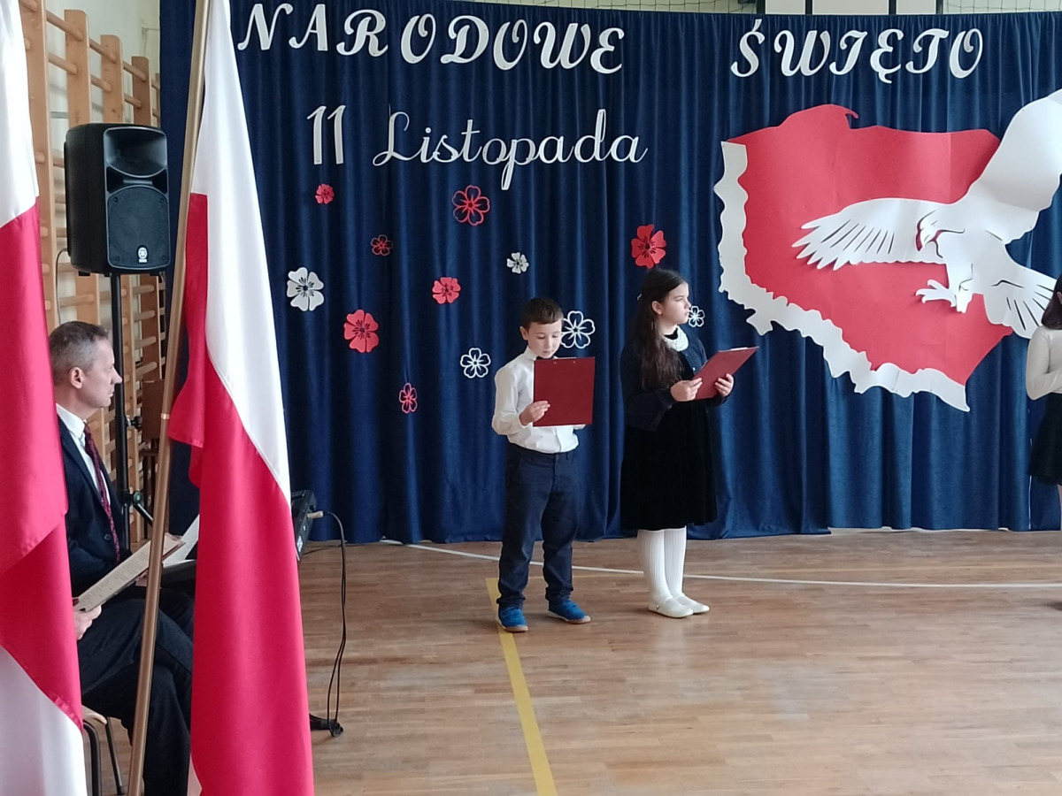 Dziś uczciliśmy 107. rocznicę Odzyskania Niepodległości przez Polskę, uczestnicząc w patriotycznym wydarzeniu z tej okazji. Uroczysty apel przygotowały dzieci z klas 4-8 pod kierunkiem swoich nauczycieli. Piękna recytacja utworów poetyckich poświęconych Ojczyźnie, wolności i niepodległości przeplatana narracją historyczną dostarczyły słuchaczom przyjemnych doznań patriotycznych. Całość uroczystości dopełniły utwory wokalne Marka Grechuty ,,Wolność", ,,Ojczyzna" i "Rota" Marii Konopnickiej w interpretacji uczniów. Cieszymy się, że żyjemy w wolnej Ojczyźnie i co roku staramy się kultywować pamięć historyczną.