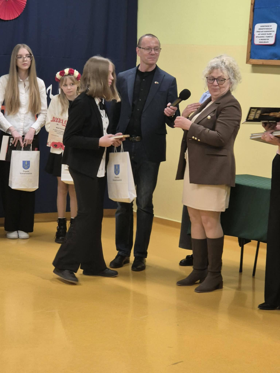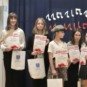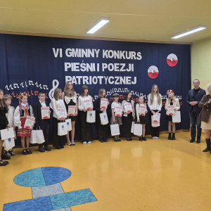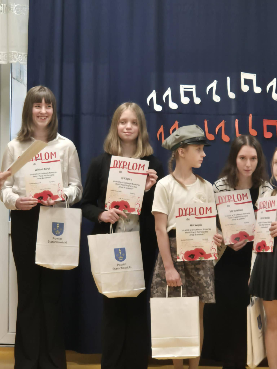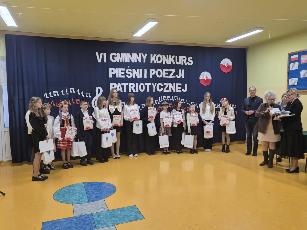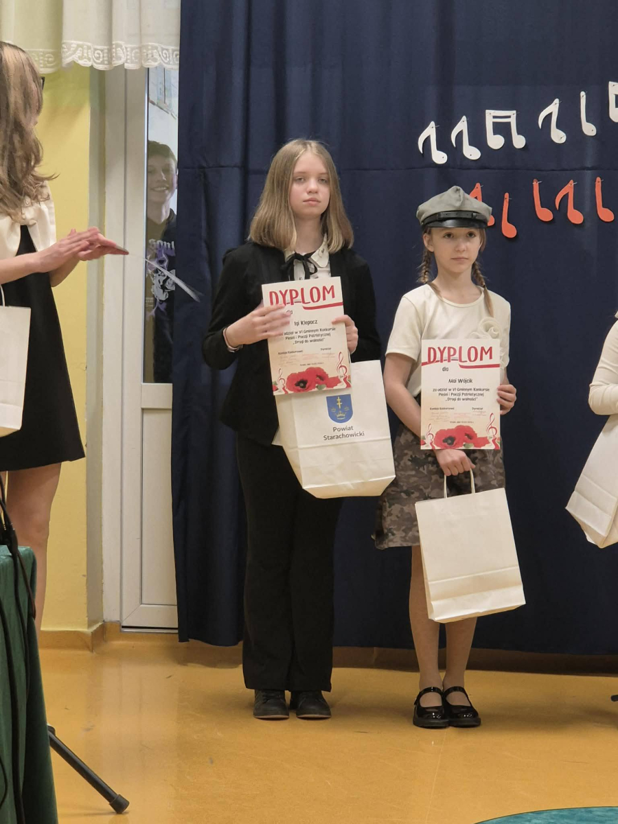 20 marca w Zespole Szkolno-Przedszkolnym w Krynkach odbył się VI Gminny Konkurs Pieśni i Poezji Patriotycznej. Naszą szkołę reprezentowała Iga Klepacz przygotowana przez nauczyciela muzyki Szymona Pochecia. Z ogromną radością informujemy, że Iga Klepacz zdobyła wyróżnienie śpiewająć pieśń "Rozkwitały pąki białych róż".