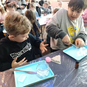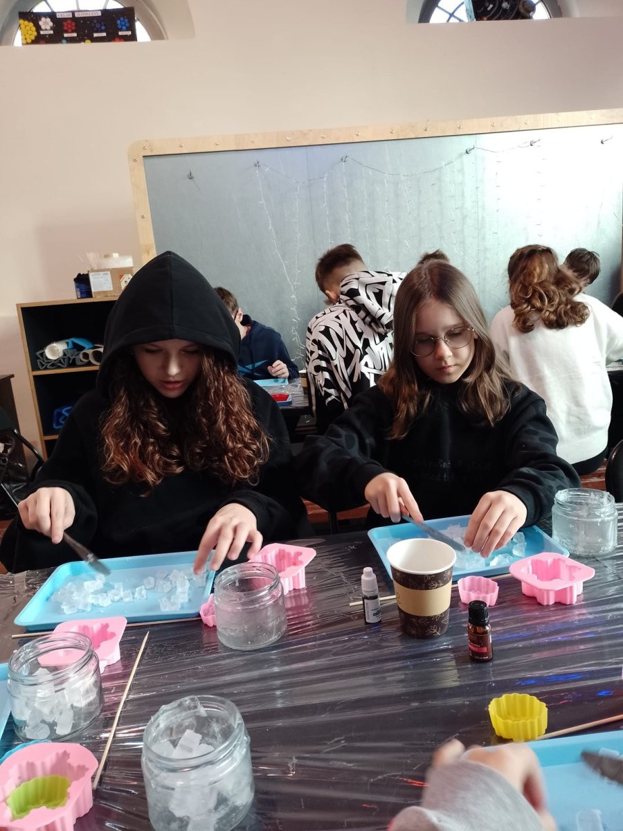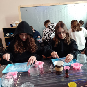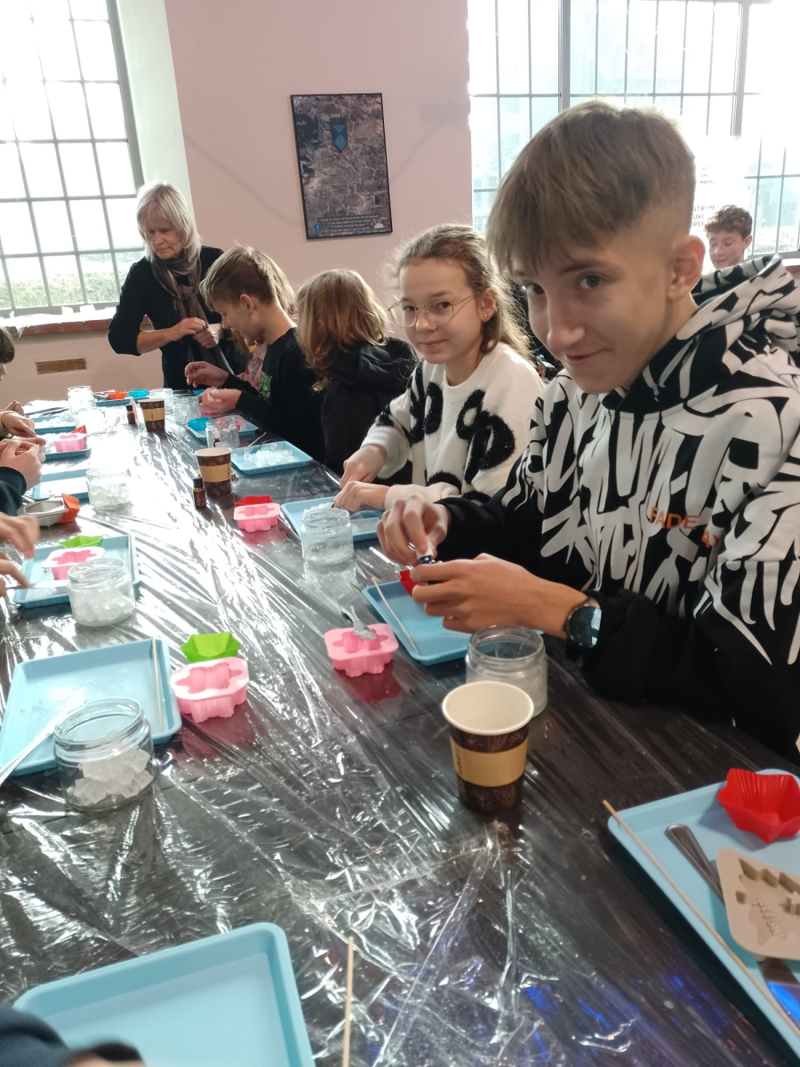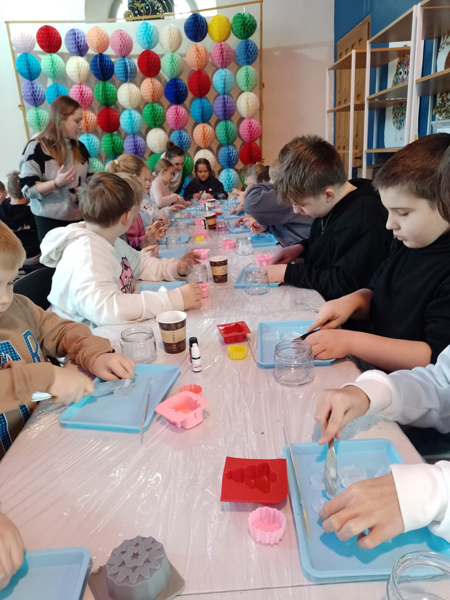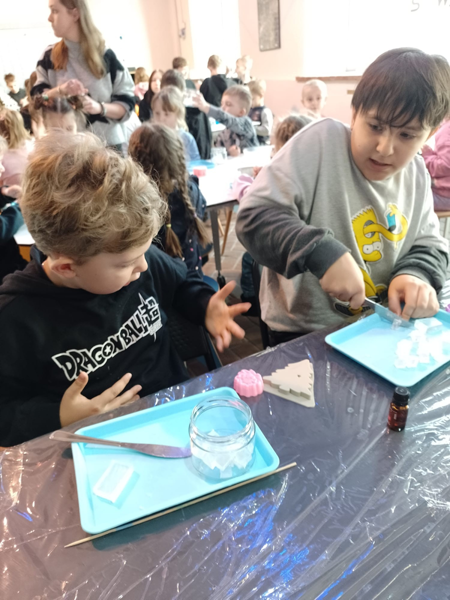 8 grudnia uczniowie wszystkich klas i przedszkolaki odwiedzili Muzeum Przyrody i Techniki w Starachowicach. Uczestniczyli w warsztatach robienia mydełek, podczas których własnoręcznie wykonali ozdobne, pachnące mydełka o pięknych kolorach. Po kreatywnych warsztatach przyszedł czas na eksperymentowanie i naukę przez zabawę w Strefie Odkrywania, Wyobraźni i Aktywności SOWA, z czego dzieci chętnie korzystały. Wycieczka była udana i wzbogaciła uczniów o nowe doświadczenia.
