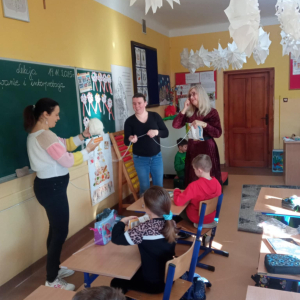 Tradycją klas młodszych stały się kreatywne spotkania z Panią Agatą, mamą uczniów naszej szkoły. Celem spotkania było budzenie aktywności oraz wzmacnianie więzi i integracja grup podczas wspólnych zajęć artystycznych. Mali artyści wykonali przepiękne, wełniane skrzaty. Warsztaty były doskonałą okazją do świetnej zabawy oraz niezwykłą lekcją kreatywności i zdolności manualnych. Pani Agacie serdecznie dziękujemy za mile spędzony czas i z ciekawością oczekujemy kolejnych kreatywnych spotkań...
