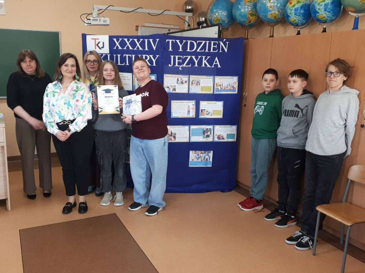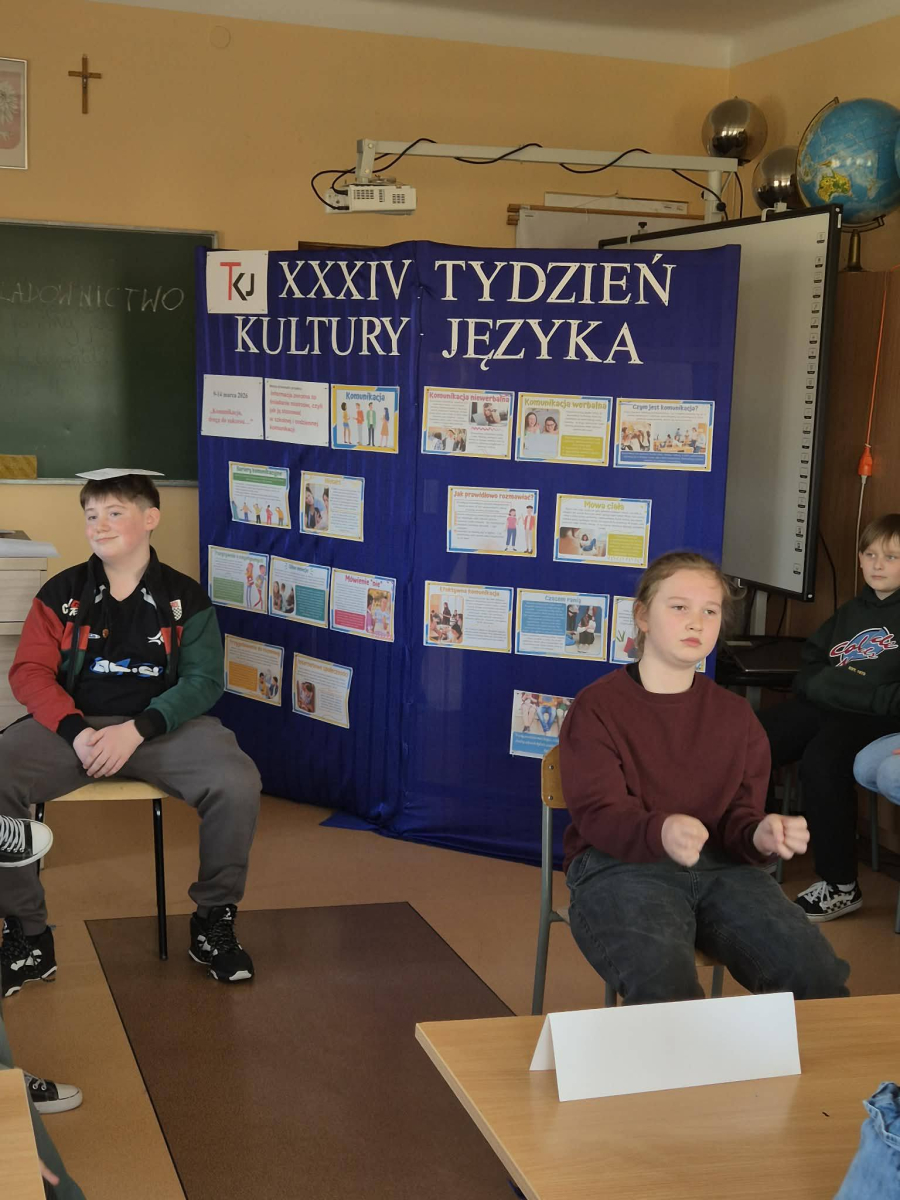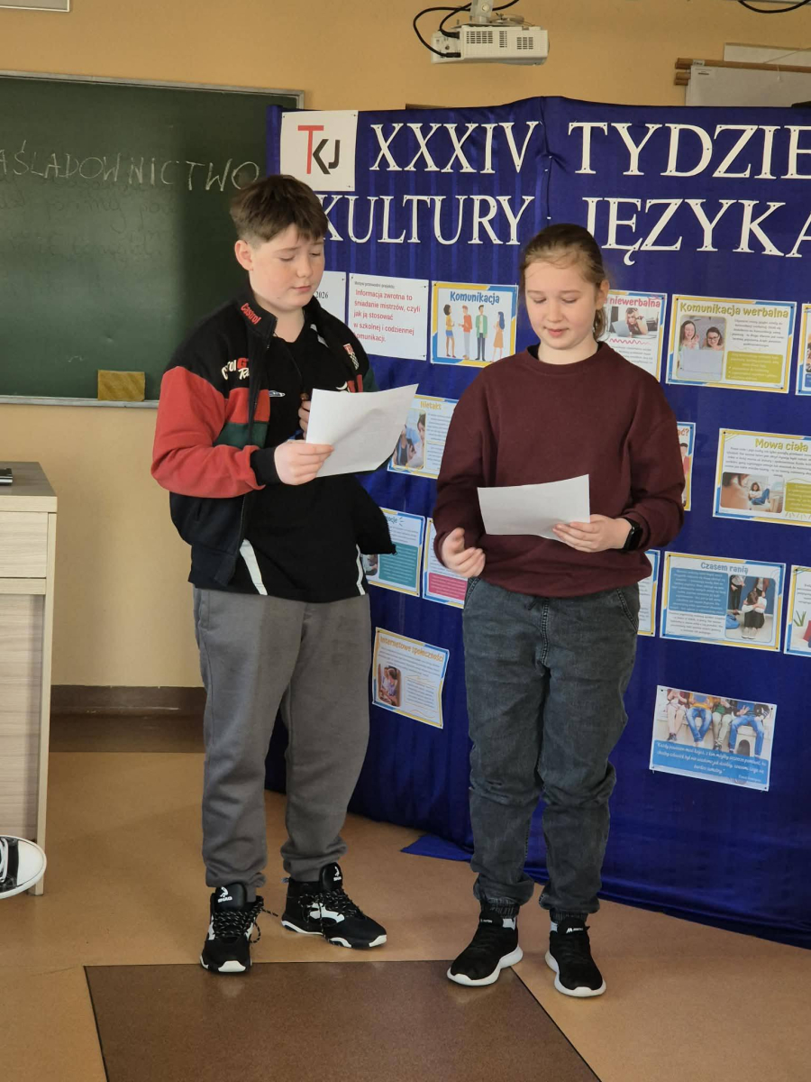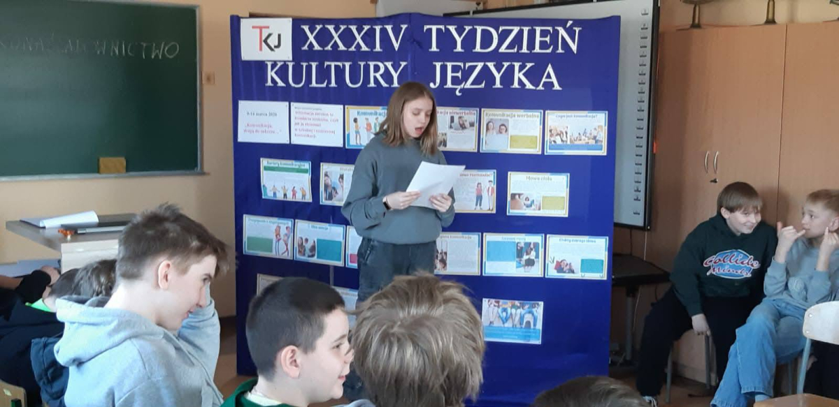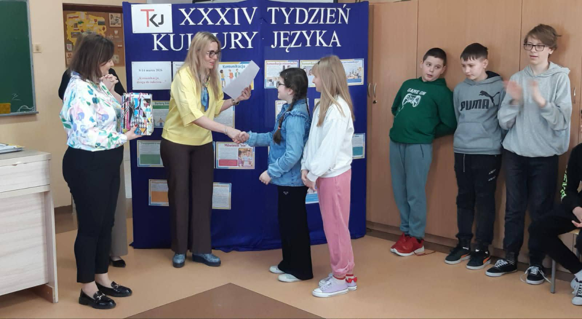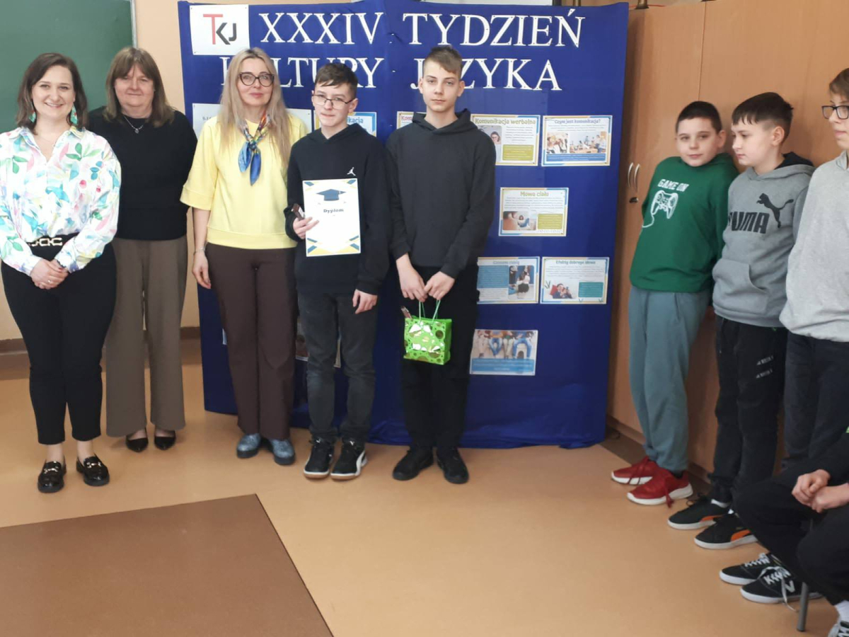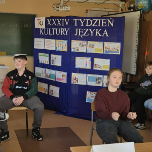 W bieżącym tygodniu, czyli między 9-14 marca 2026 r. świętujemy XXXIV Tydzień Kultury Języka. Z tej okazji zorganizowaliśmy międzyklasowy turniej "Polonistyczny Mistrzunio 2026", w którym zmagania polonistyczne podjęli uczniowie klas IV- VIII. Wśród konkurencji konkursowych pojawiła się chociażby twórcza interpretacja tekstów, zadania gramatyczne, słowotwórcze i ortograficzne. Mistrzami języka polskiego okazali się piątoklasiści, ale brawa należą się wszystkim naszym Uczestnikom, którzy zaprezentowali wysoki poziom wiedzy o języku polskim, a także niespotykaną kreatywność . Nade wszystko połączyła nas dziś wspólna zabawa i duża dawka pozytywnych emocji!