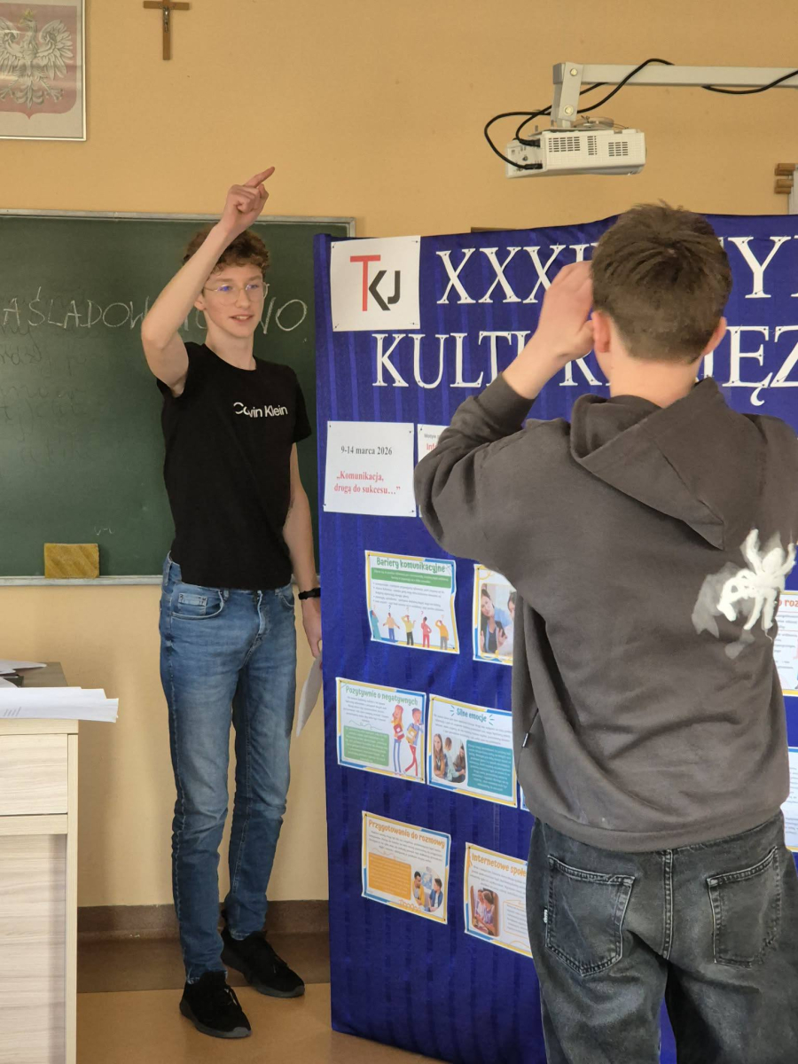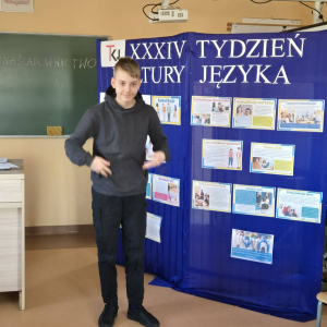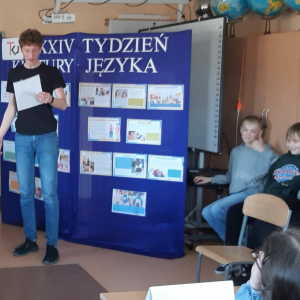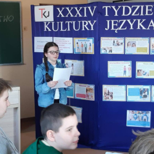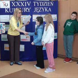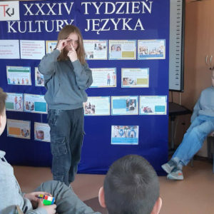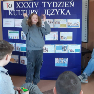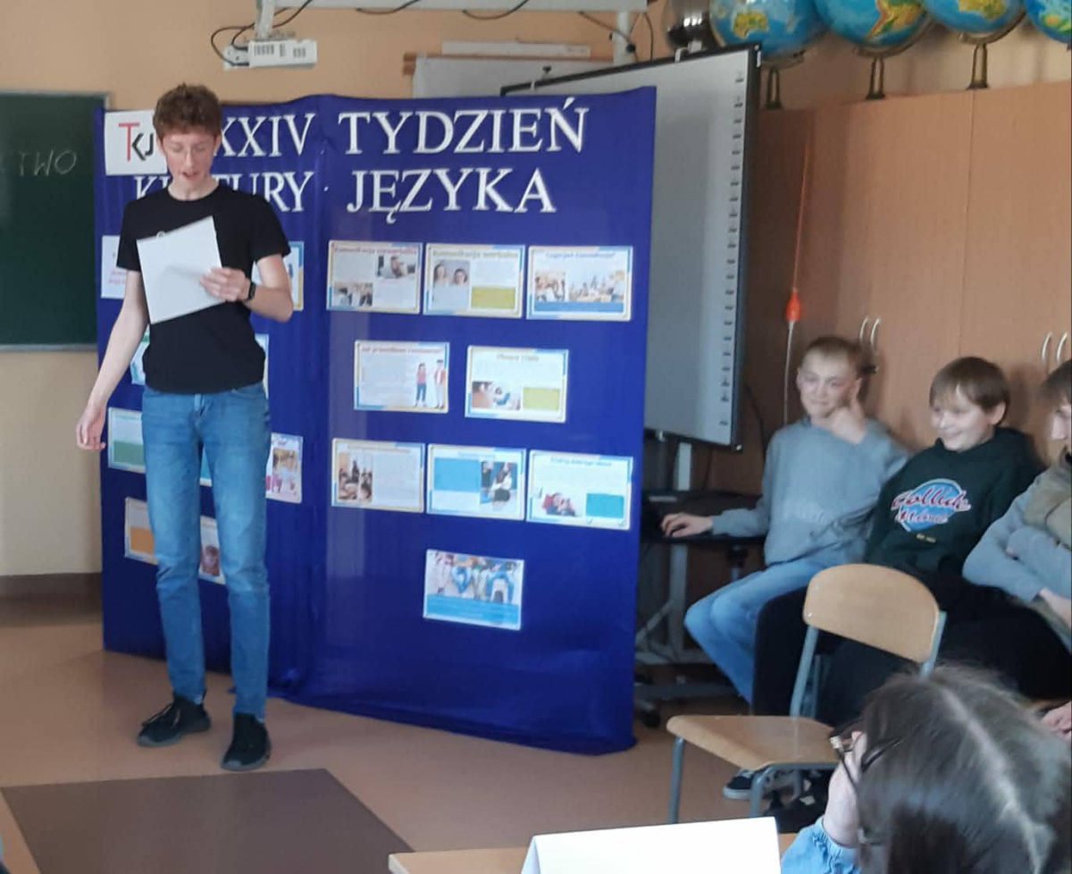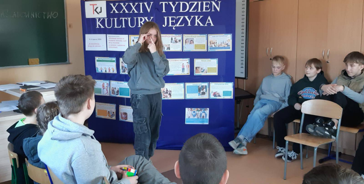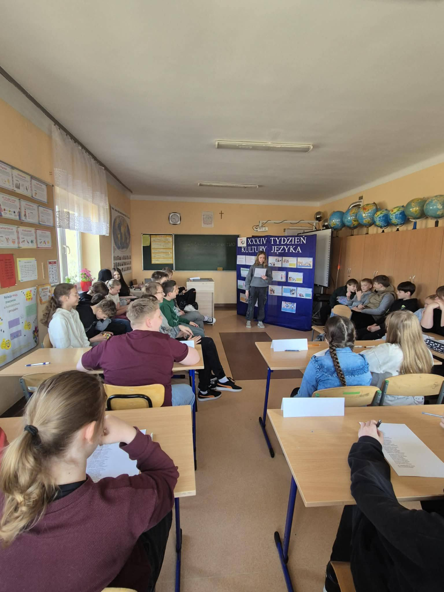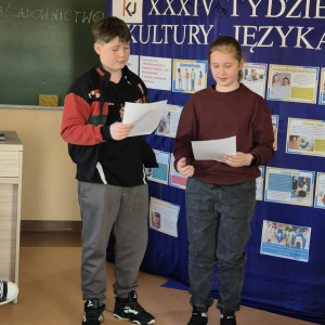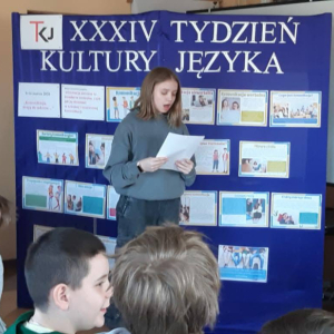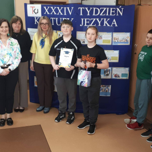 W bieżącym tygodniu, czyli między 9-14 marca 2026 r. świętujemy XXXIV Tydzień Kultury Języka. Z tej okazji zorganizowaliśmy międzyklasowy turniej "Polonistyczny Mistrzunio 2026", w którym zmagania polonistyczne podjęli uczniowie klas IV- VIII. Wśród konkurencji konkursowych pojawiła się chociażby twórcza interpretacja tekstów, zadania gramatyczne, słowotwórcze i ortograficzne. Mistrzami języka polskiego okazali się piątoklasiści, ale brawa należą się wszystkim naszym Uczestnikom, którzy zaprezentowali wysoki poziom wiedzy o języku polskim, a także niespotykaną kreatywność . Nade wszystko połączyła nas dziś wspólna zabawa i duża dawka pozytywnych emocji!