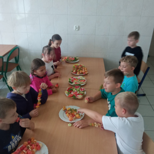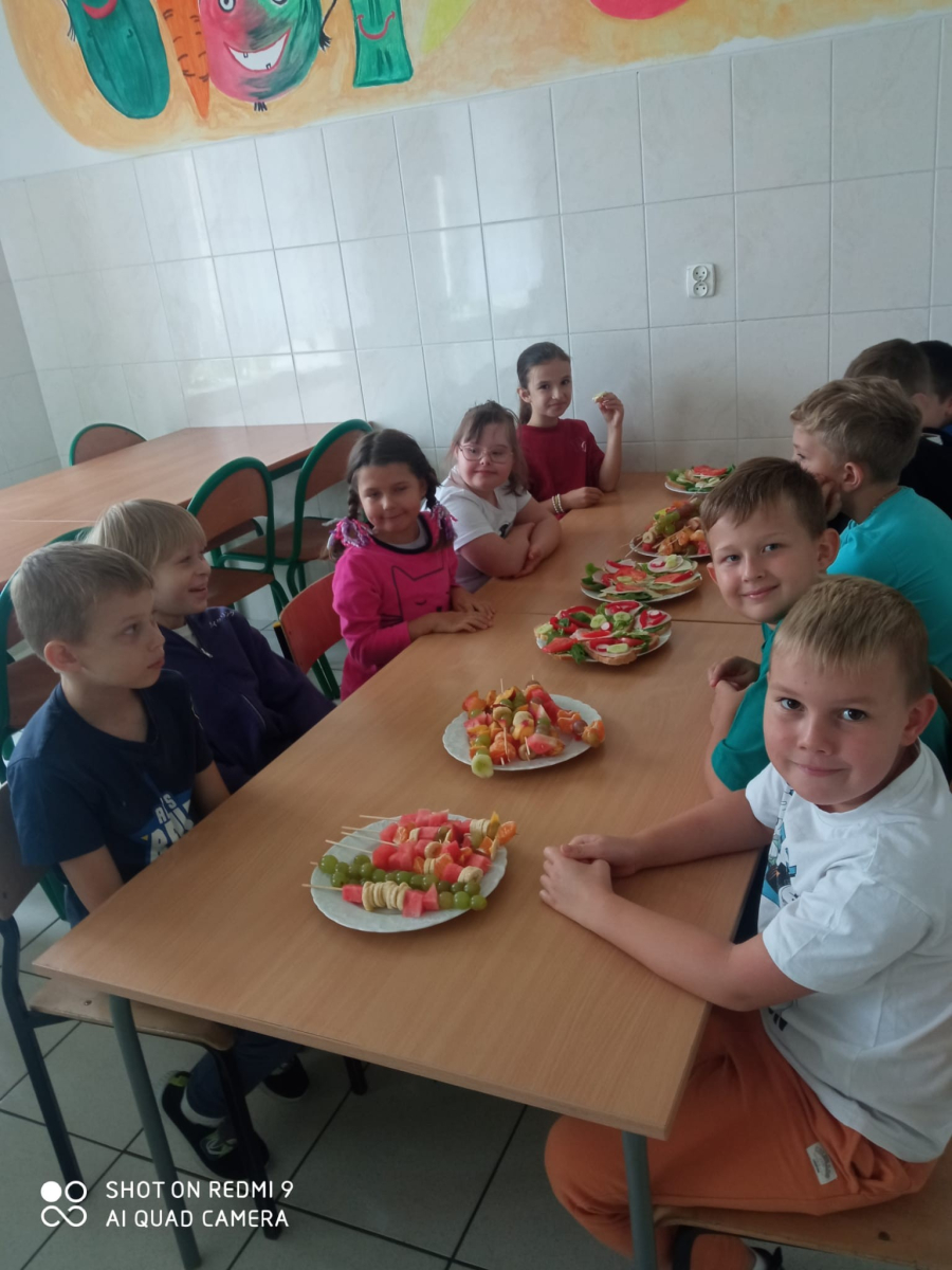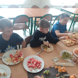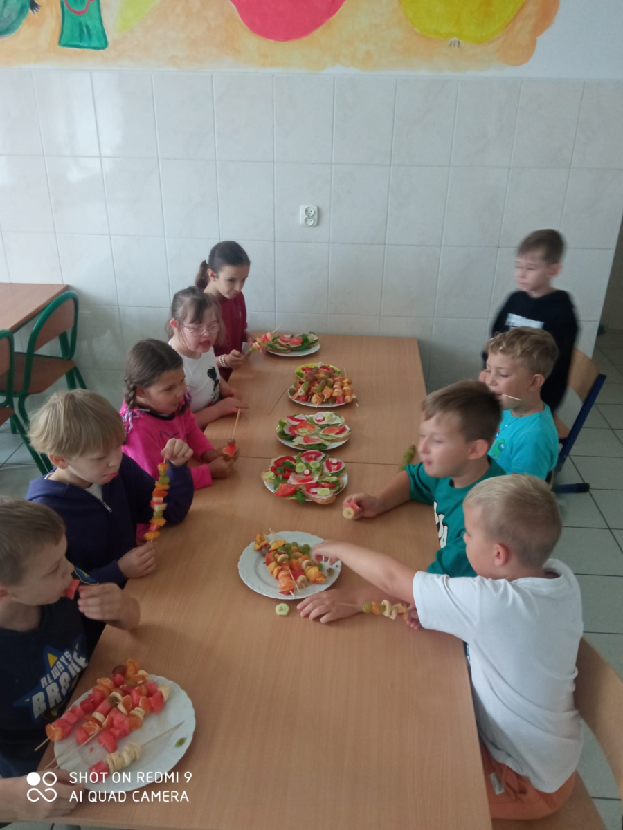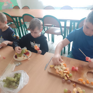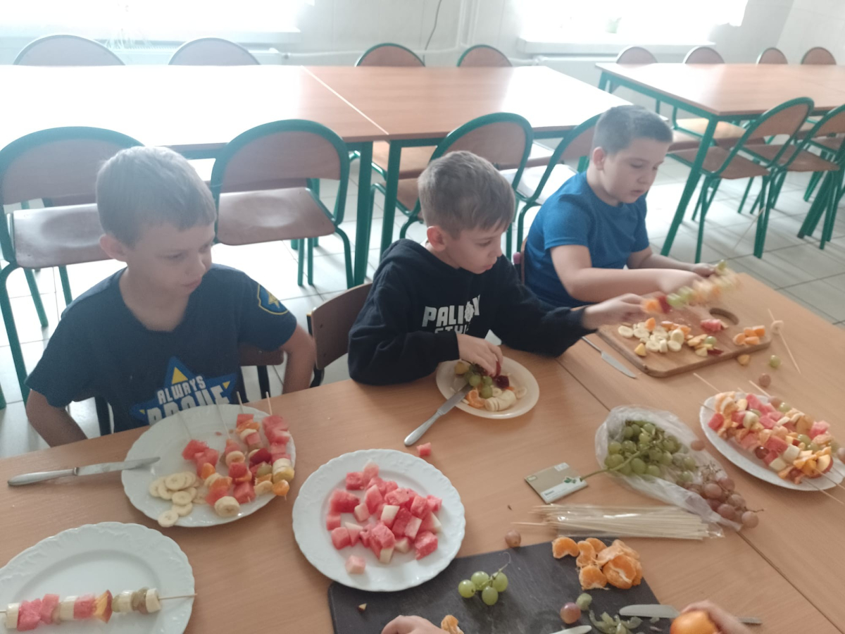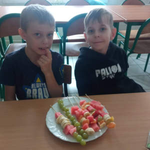 Dziś w naszej szkole powstały pyszne, zdrowe i kolorowe kanapki oraz smaczne i pełne witamin owocowe szaszłyki, a wszystko to za sprawą uczniów klasy 2 i 3.