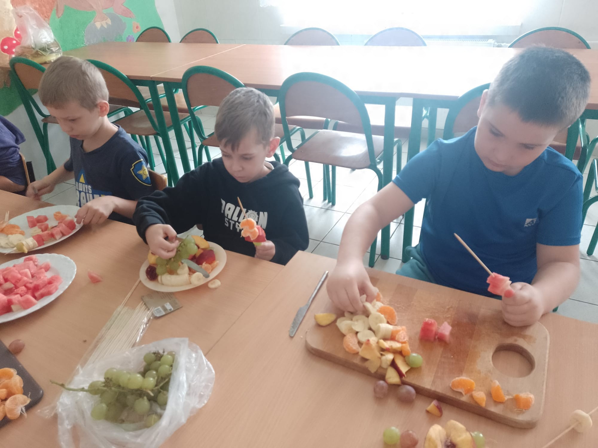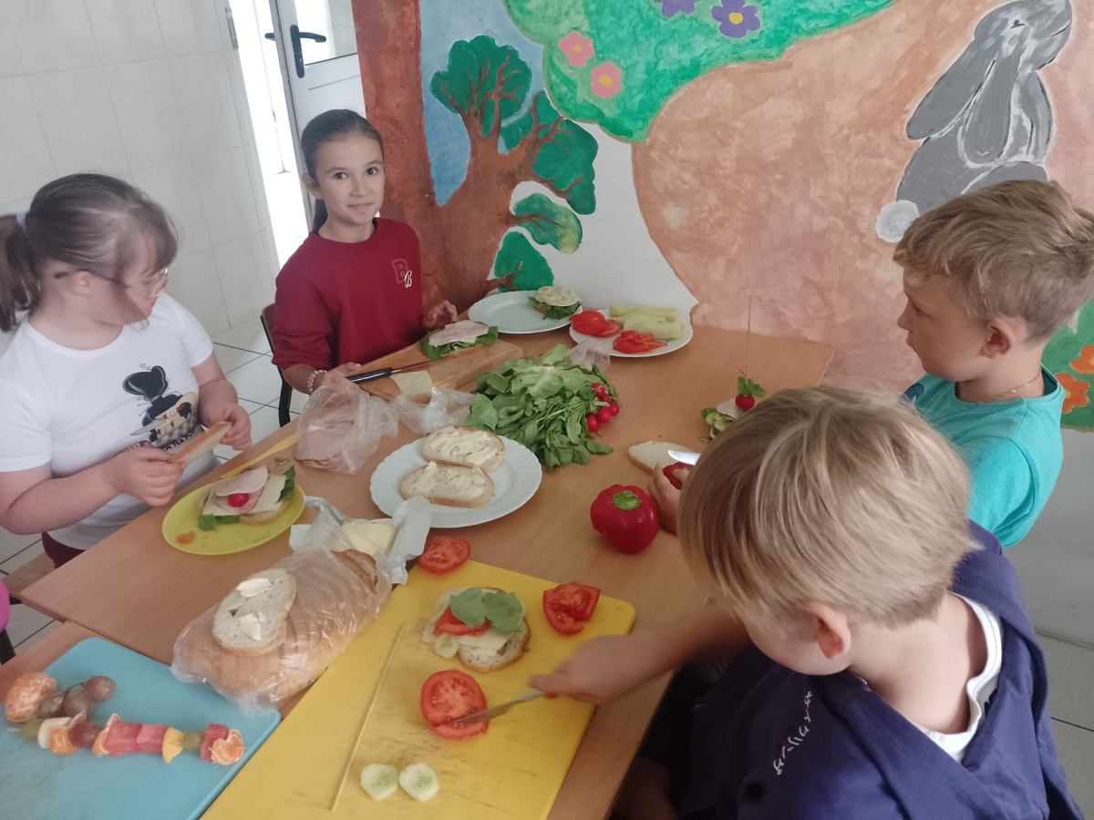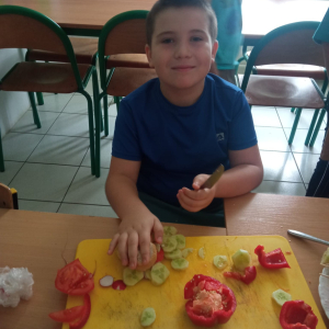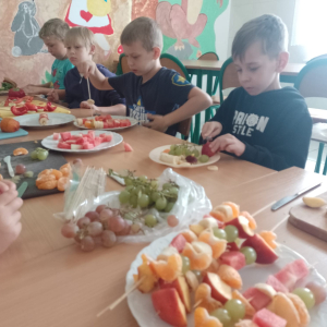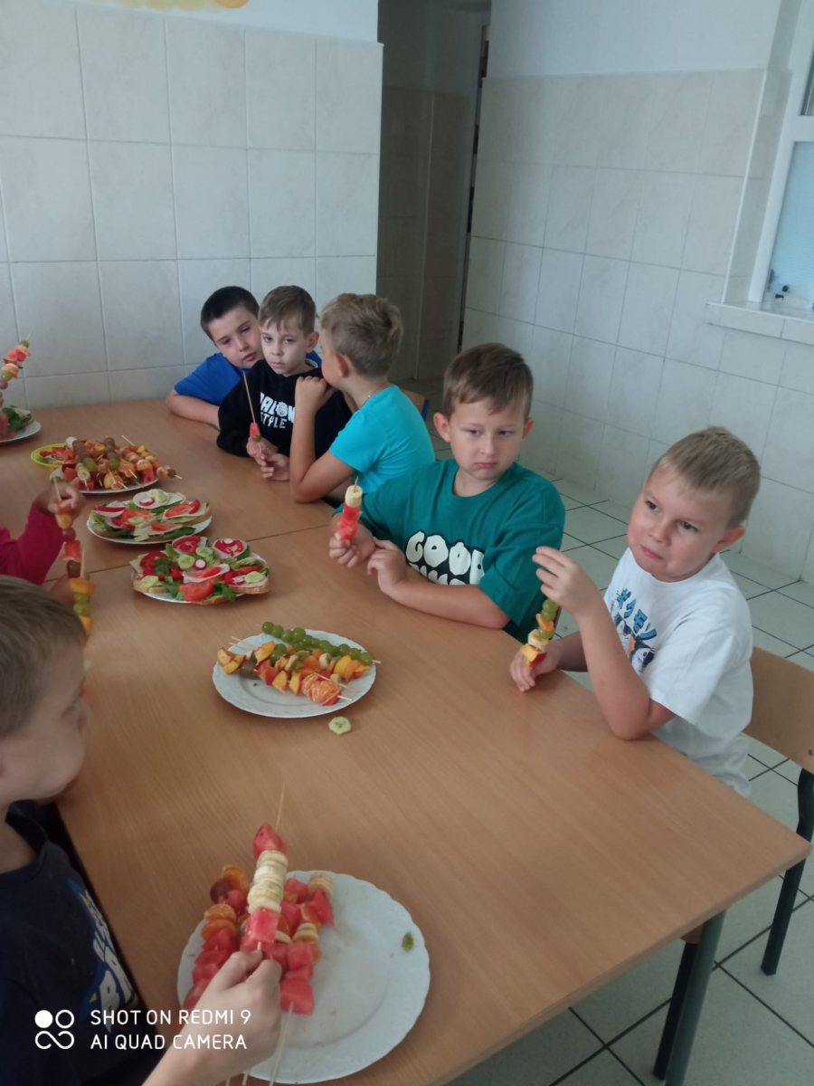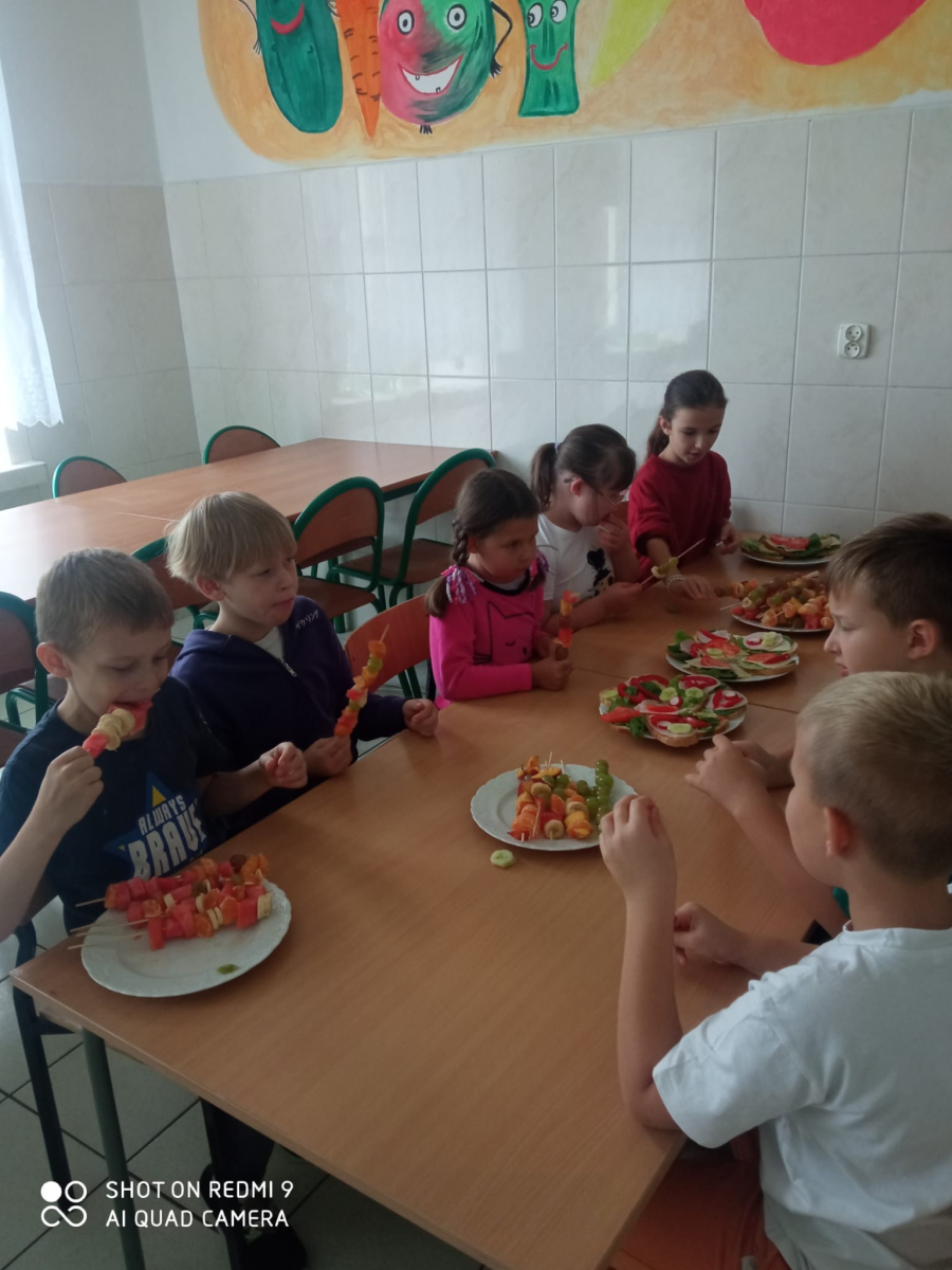 Dziś w naszej szkole powstały pyszne, zdrowe i kolorowe kanapki oraz smaczne i pełne witamin owocowe szaszłyki, a wszystko to za sprawą uczniów klasy 2 i 3.